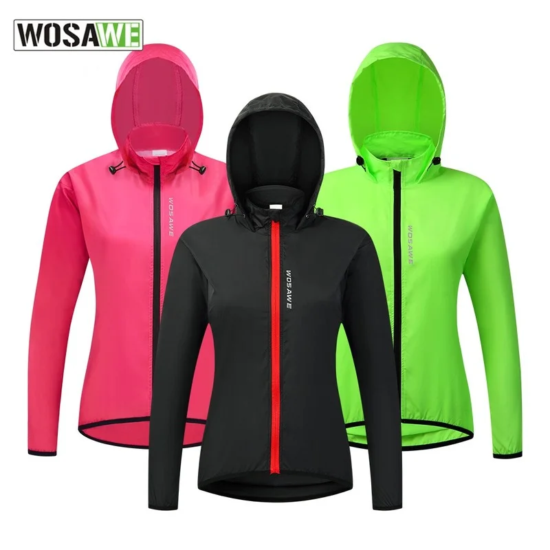 WOSAWE Женская велосипедная куртка с длинным рукавом с капюшоном водонепроницаемая ветрозащитная велосипедная MTB ветровка для спорта на открытом воздухе куртки для бега