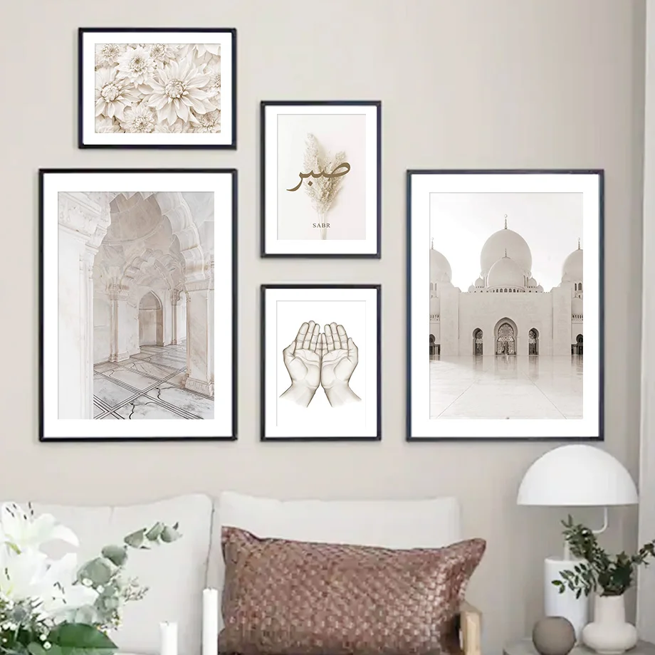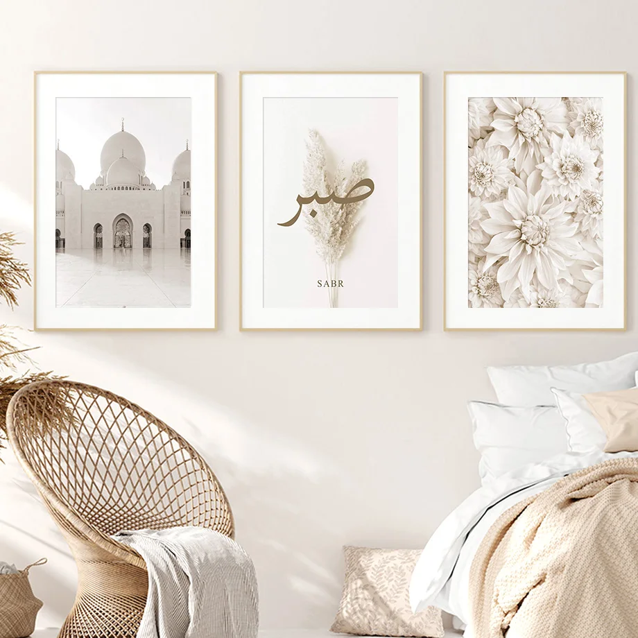 Исламская бежевая мечеть тростник цветок листья настенная Картина на холсте скандинавские плакаты и принты настенные картины для декора гостиной