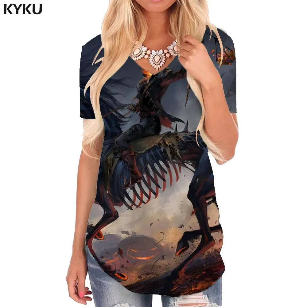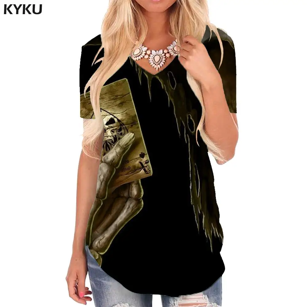 Женская футболка KYKU, разноцветная футболка с 3D-принтом черепа