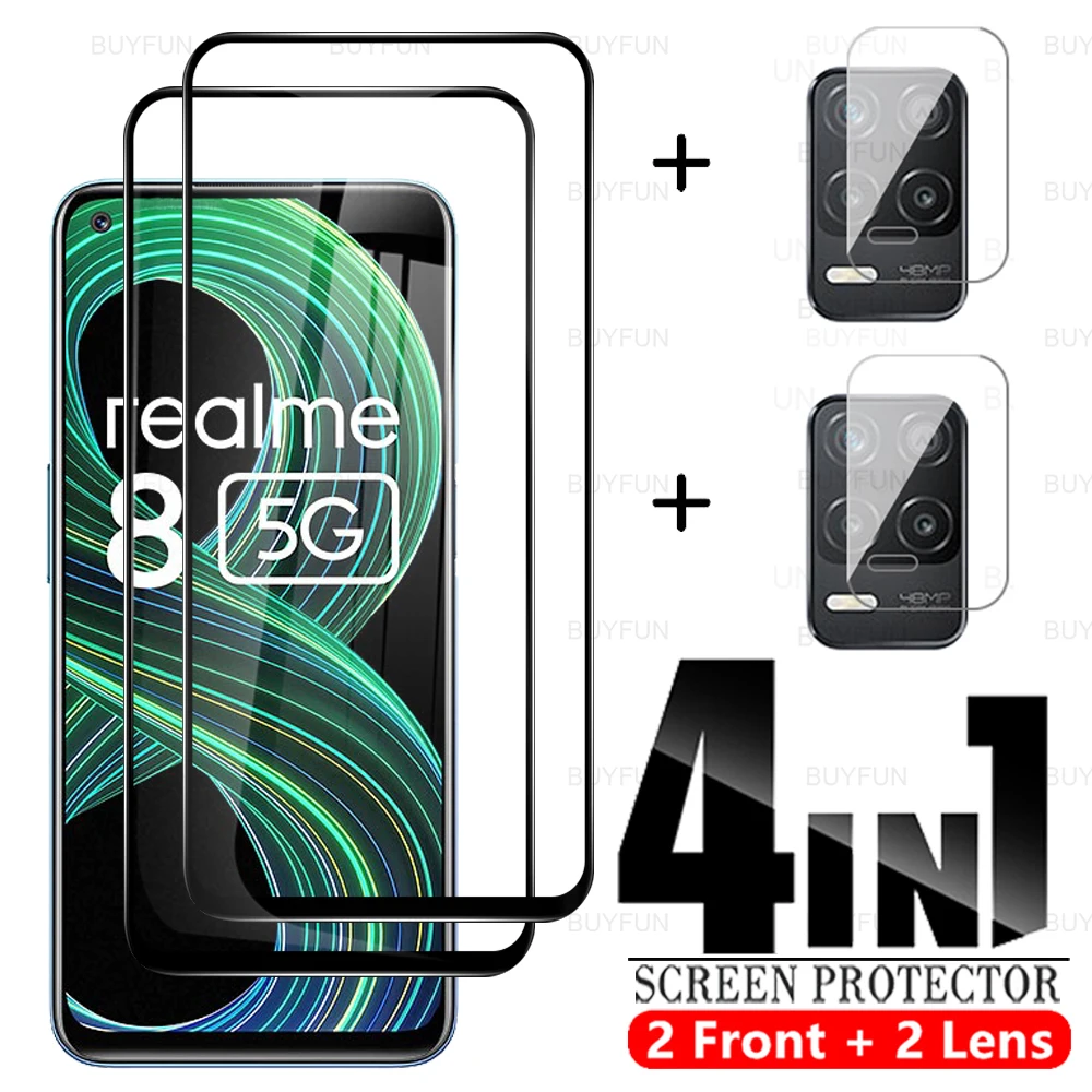 4 в 1 чехол из закаленного стекла с полным покрытием для Realme 8 7 5G HD Защитное стекло для realme 6 7 8 Pro Narzo 30A 30