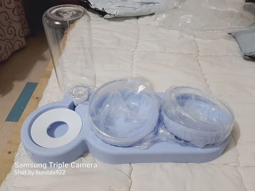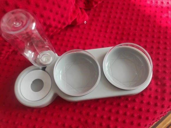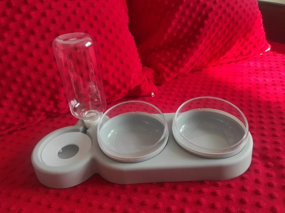 Кормушка понравилась, очень хорошего качества. подставка устойчивая, чаши вставляются в пазы, пазы имеют несколько положений, так что чаши можно поворачивать. Поилка удобная. Все детали кормушки легко моются. У нас крупный кот с большой головой ему кормушка отлично подходит, чаши такие большие, что он спокойно в них мордой помещается, и не вытаскивает корм на пол, как раньше. Выглядит кормушка тоже очень эстетично, что немаловажно. Очень довольна покупкой. Упаковано было в надутый пакет. Продавец быстро отправил посылку. Спасибо.