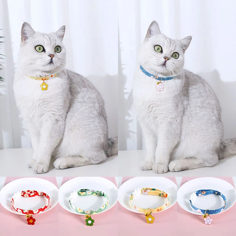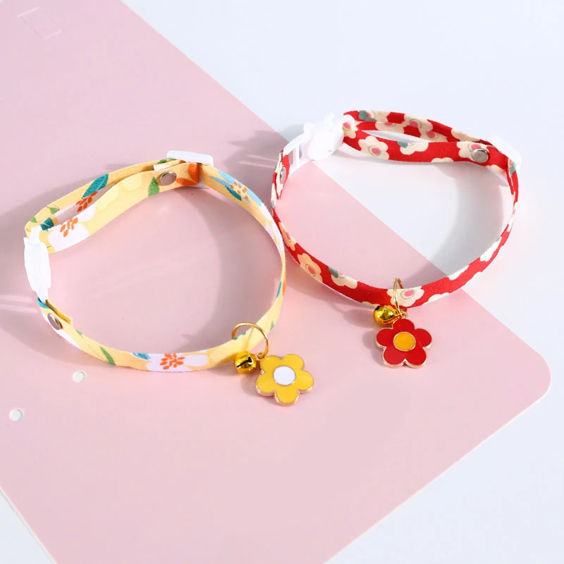 Ошейник с подвеской-колокольчиком для питомцев, с цветочным принтом...