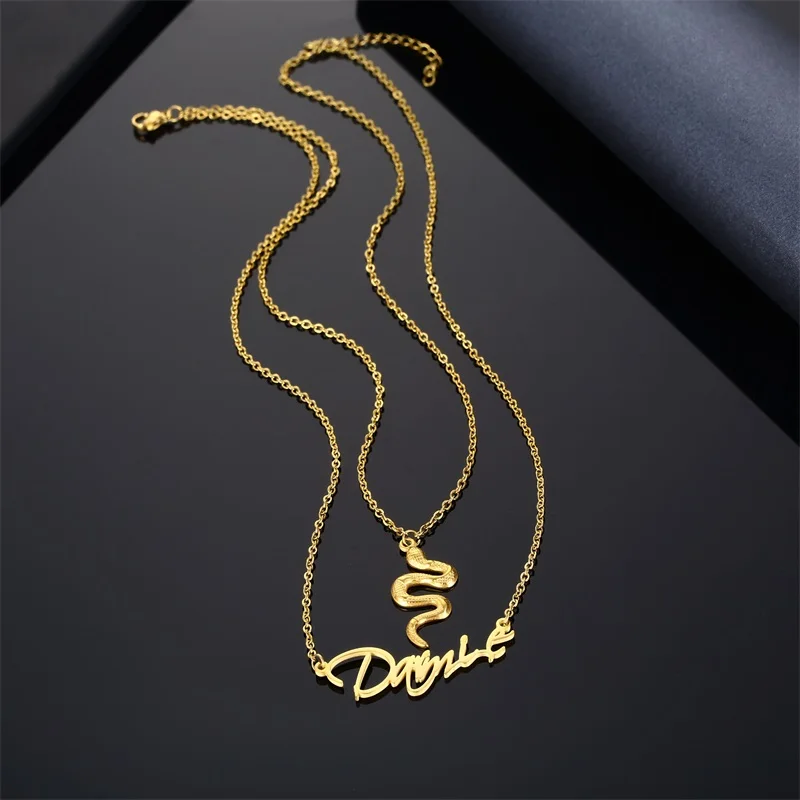 Ретро минималистский Персонализированный Кулон из нержавеющей стали в виде змеи с буквами для женщин индивидуальный эффектный подарок