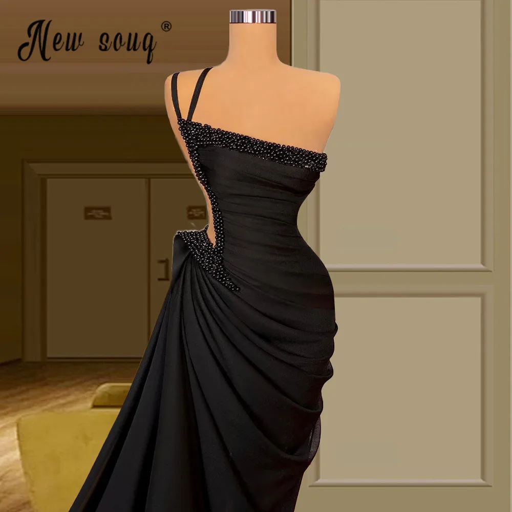 Новинка 2021, вечерние платья с бусинами на одно плечо, Черное длинное платье русалки для выпускного вечера, недорогие платья