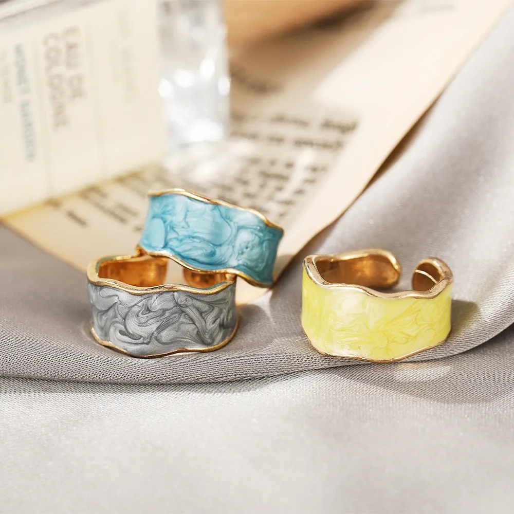 Винтажные Геометрические Волны эмаль, капля глазурь кольца для женщ...