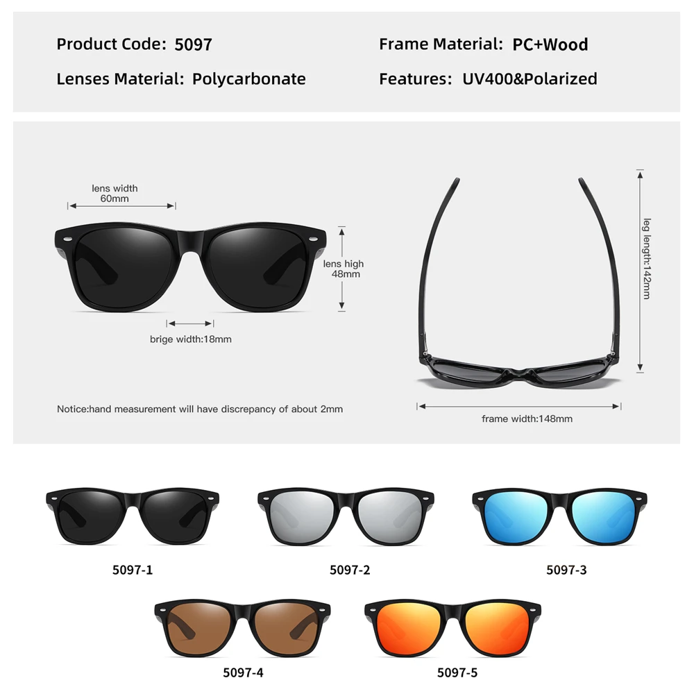 Мужские и женские очки с бамбуковыми линзами, поляризационные солнцезащитные очки с прямоугольными линзами, UV400, 2022