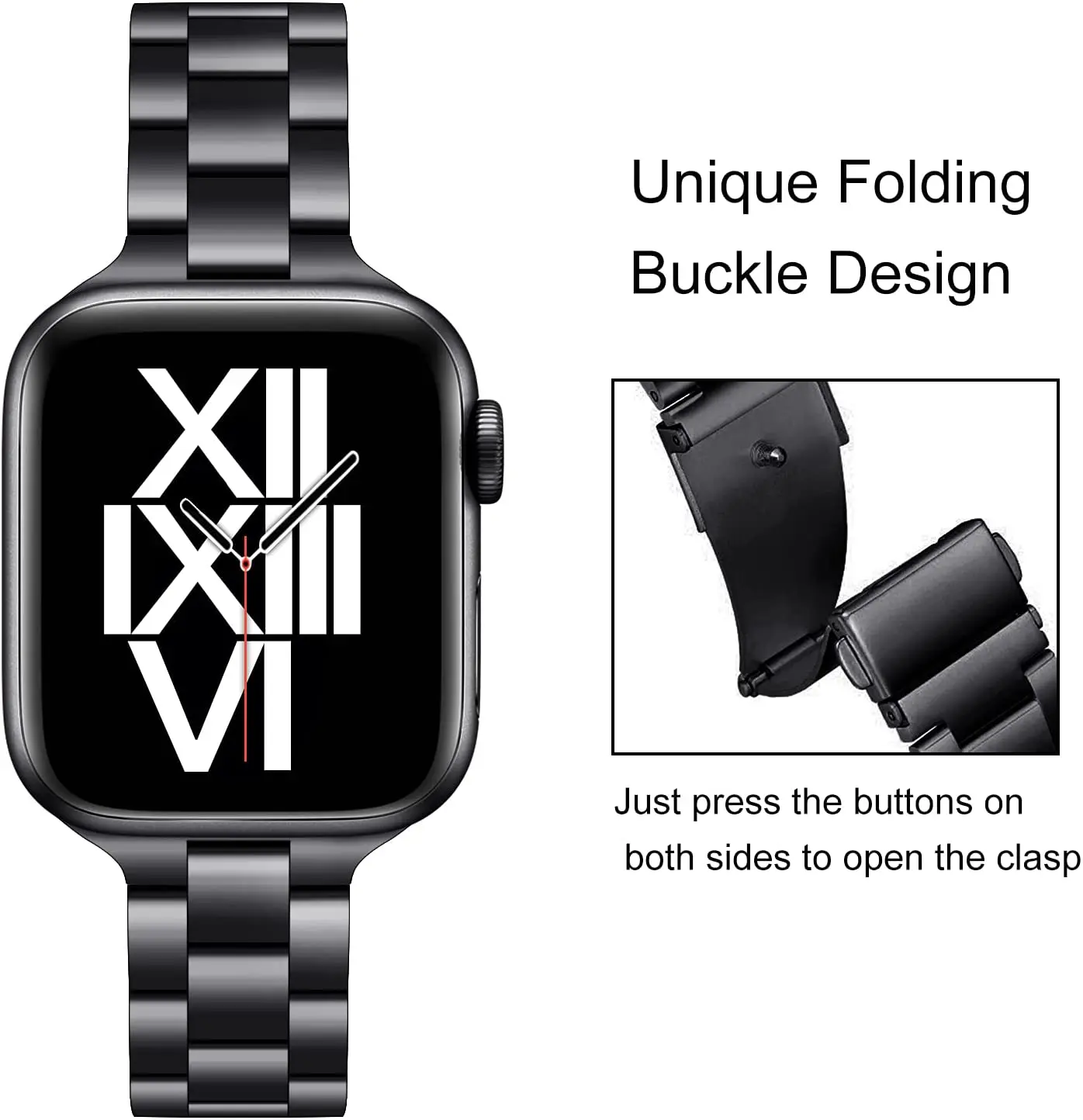 【Снимает часы от спортивного до шикарного! Оригинальный ремешок выглядит неуклюжно широким и простым на вашем запястье. Наш тонкий/тонкий браслет из нержавеющей стали для Apple watch, безусловно, является хорошим выбором для вас. Благодаря обтекаемому тонкому дизайну часы выглядят более стильно и женственно, а не громоздким, толстым и тяжелым ремешком【Совместимая модель 】 специально разработана для женщин, подходит для Apple Watch SE, Series 6, 5, 4, 3, 2, 1,Special Edition, 38 мм/40 мм, 42 мм/44 мм.【Надежная Пряжка и съемная застежка 】 Уникальный дизайн складной пряжки делает ваши часы более безопасными. 6 звеньев снимаются. Съемный. Пожалуйста, выполните правильные шаги, чтобы удалить ссылки на часы.【Премиум нержавеющая сталь 】этот тонкий ремешок для часов apple изготовлен из высококачественной нержавеющей стали, а нержавеющая отделка-это красивое сочетание шлифованных и полированных сегментов, который повышает комфорт и долговечность браслета часов и придает вашим часам более женственный и утонченный вид.
