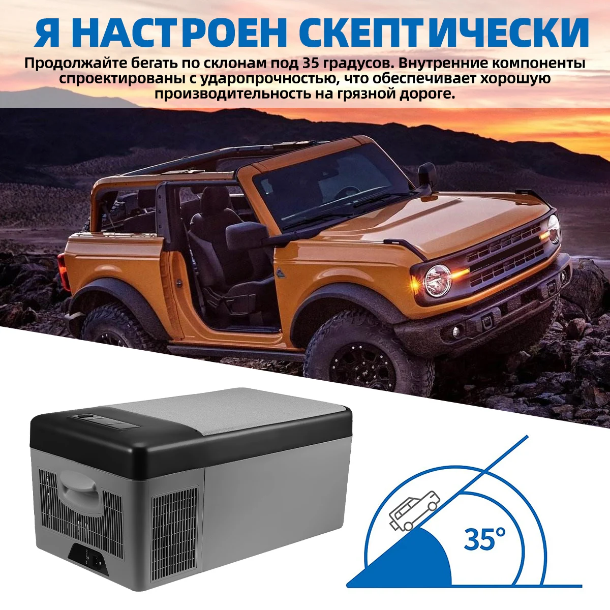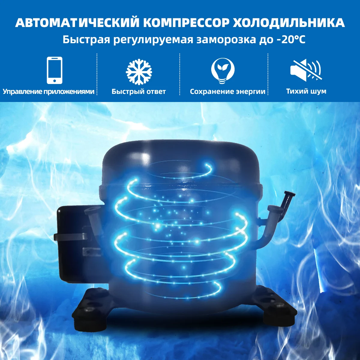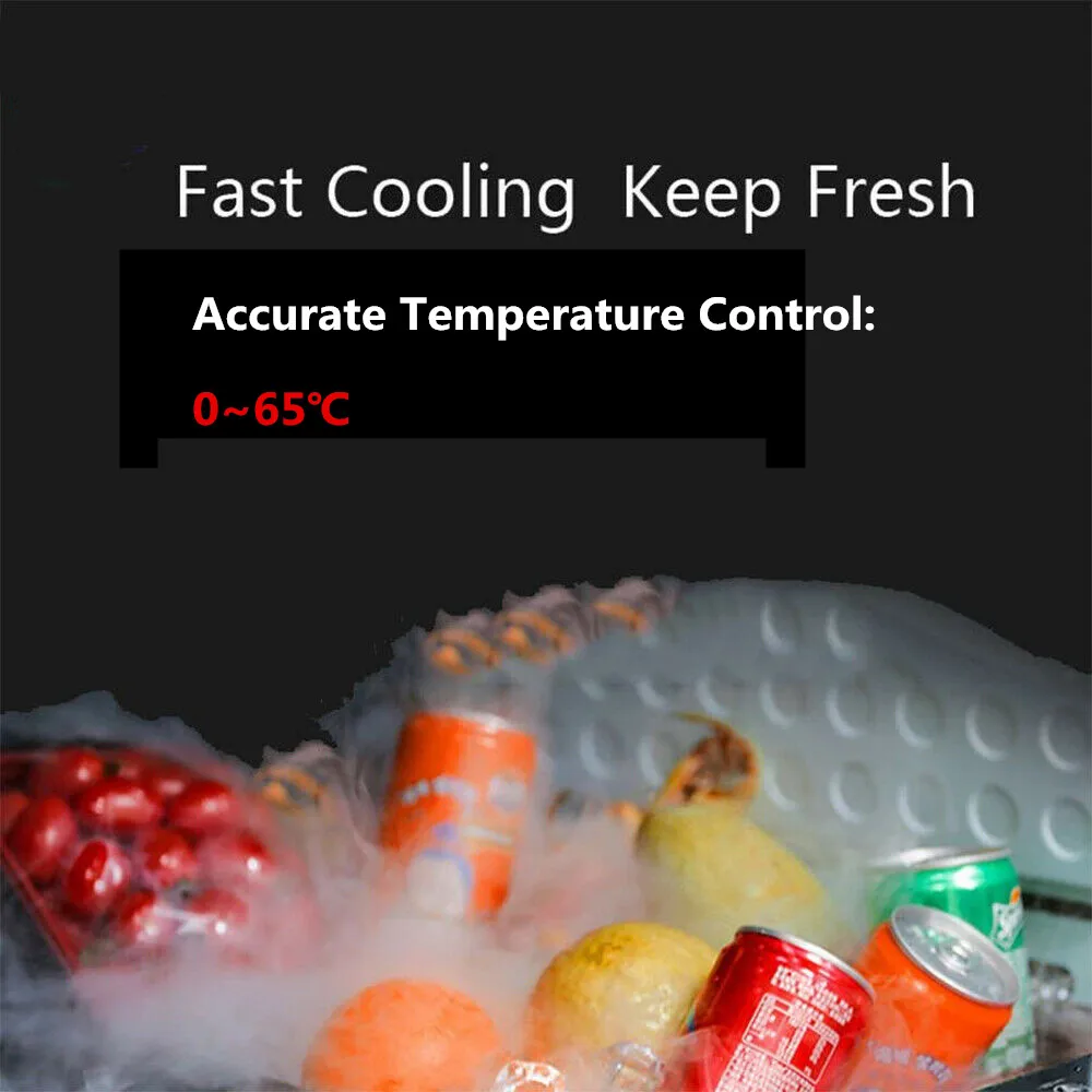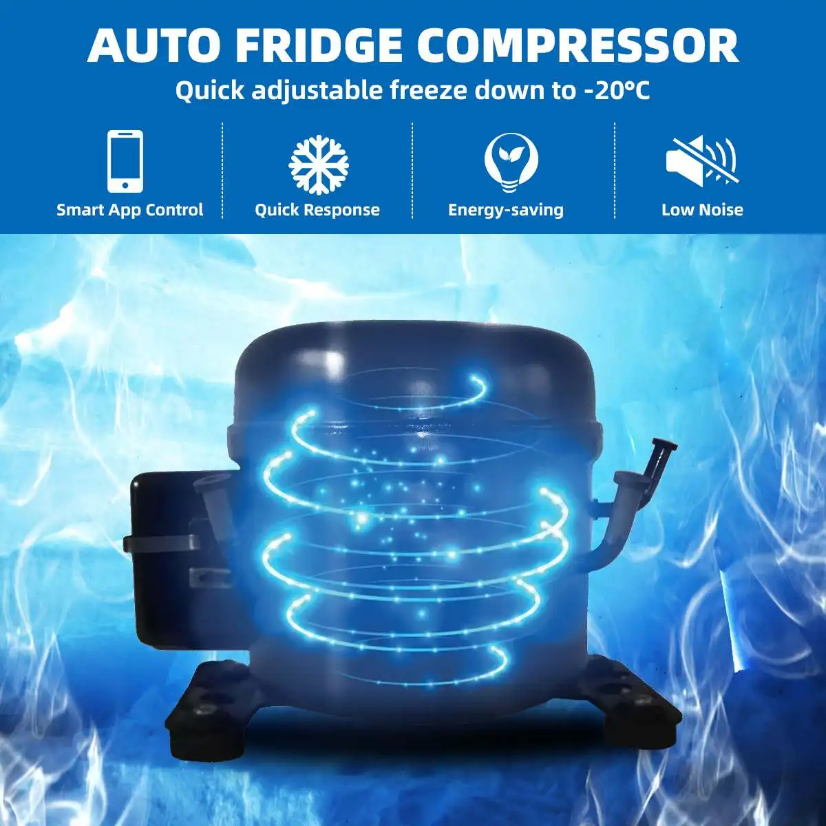 -Быстрое Охлаждение: с помощью мощного компрессора, портативный холодильник работает с функцией быстрого замораживания, при температуре окружающей среды 25 °C, холодильной камеры может быть остужено от 25 °C до 0 °C всего за 25 минут (бутылка воды занимает 4,5 часов замерзнуть)