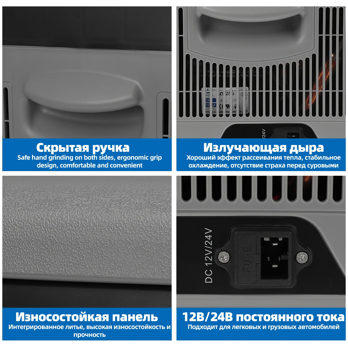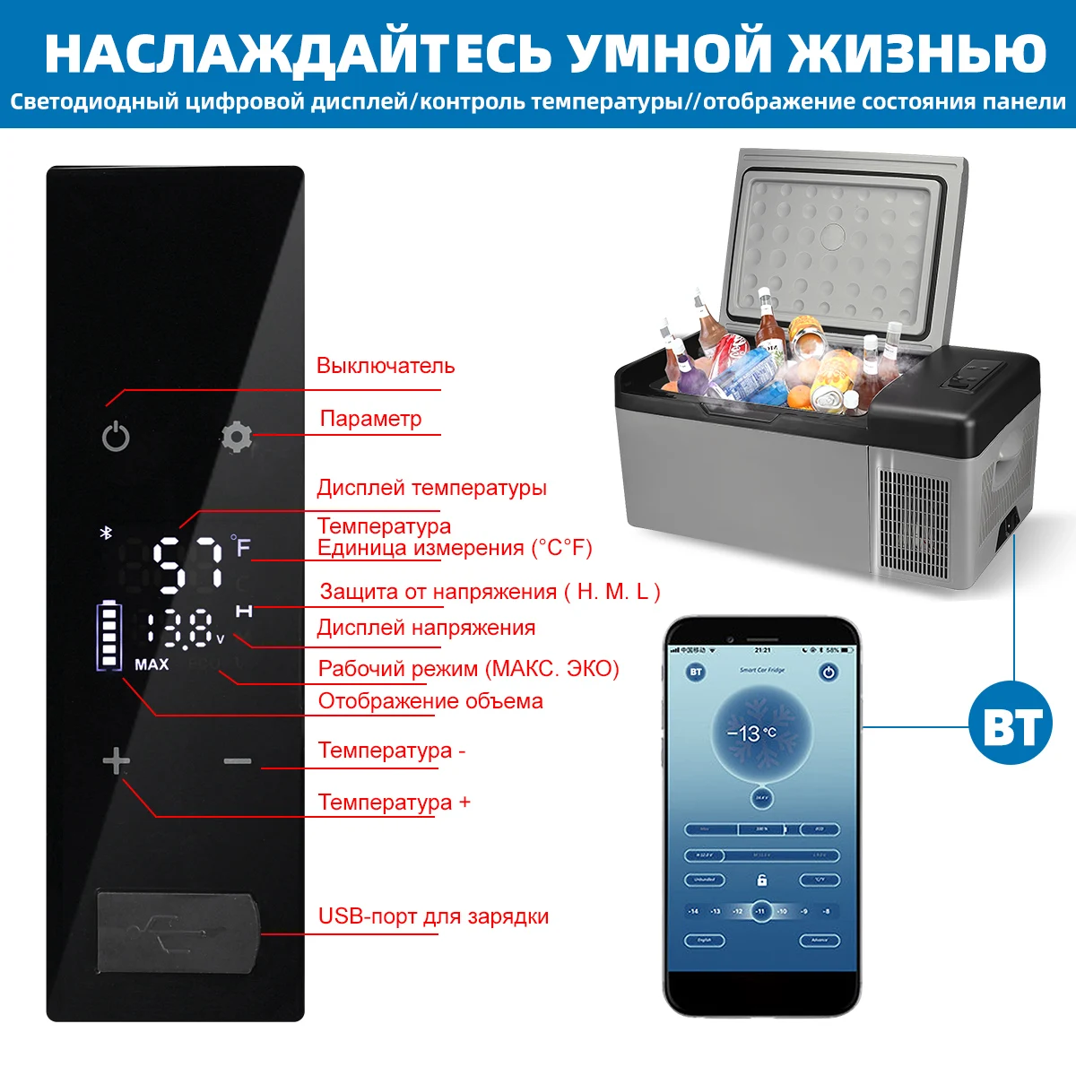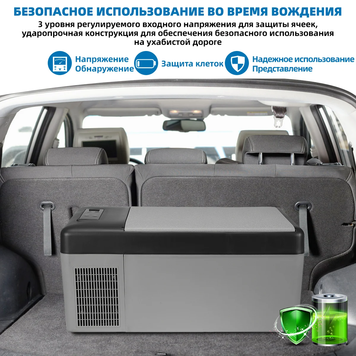 -Безопасность и энергосбережение: с защитой от напряжения, если напряжение слишком низкое, автомобильный холодильник автоматически отключит соединение, чтобы предотвратить разрядку батареи. Максимальная мощность 45 Вт, высокая производительность, экономия энергии 30%.