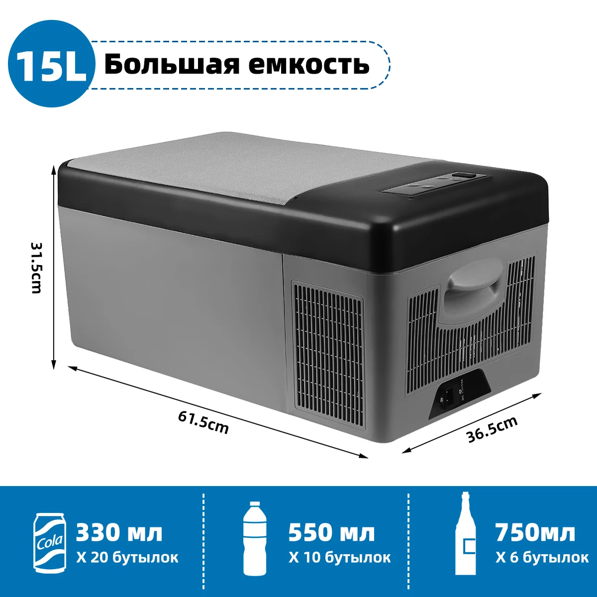 -Большая емкость: внутренняя емкость составляет 15 л, достаточно для ежедневного использования. Благодаря своим удивительным особенностям, он может держать еду свежей при различных температурах. Отлично подходит для напитков, фруктов, мороженого и т. д.