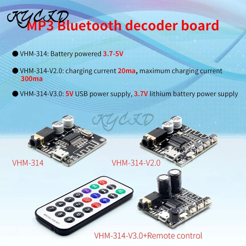 Плата аудиоресивера VHM 314 V2.0 V3.0 Bluetooth 5,0, модуль MP3, беспроводной музыкальный плеер DC 3,7-5 в для динамика