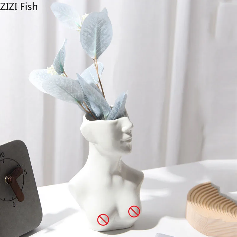 Ваза для цветов с фигуркой бюста, цветочные горшки, декоративные геометрические керамические вазы с персонажами, украшение для гостиной, Цветочная композиция