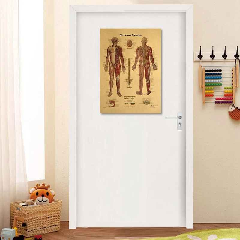 Человеческое тело, Мышечная система, структурный плакат, человеческая анатомия, HD, крафт-бумага, наклейки, бар, домашний декор, ретро, бумажная живопись, 42x30 см