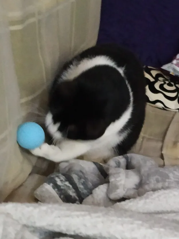Мячик издает прикольные звуки, кот минут 20 с ним интенсивно играл. Потом звук пропал, непонятно поломали или батарейка села))
