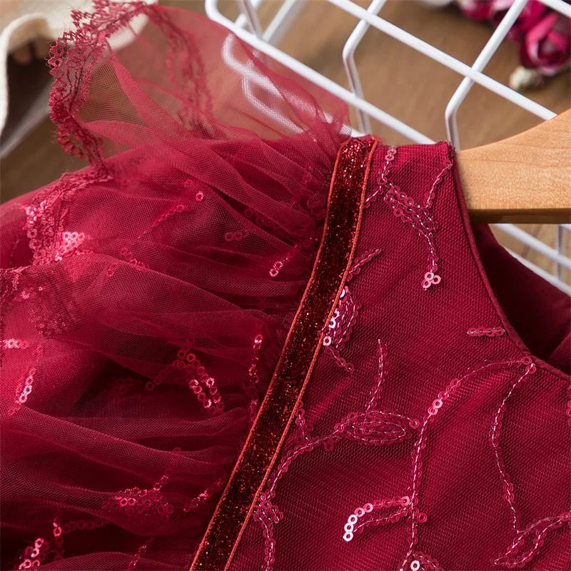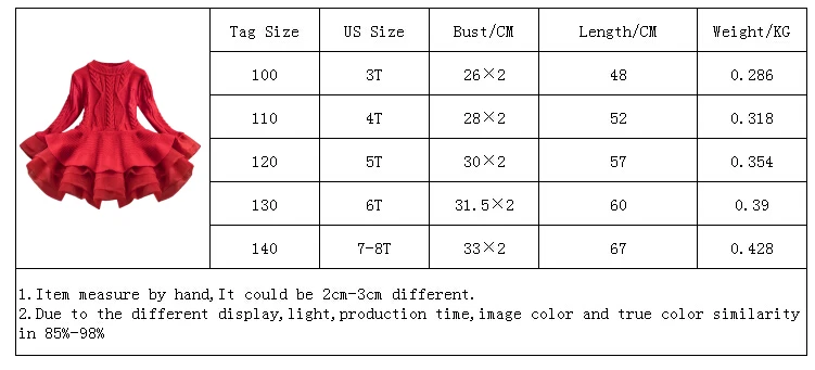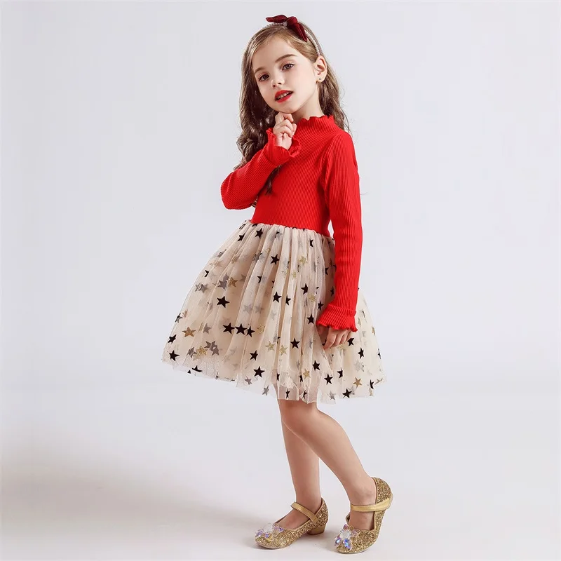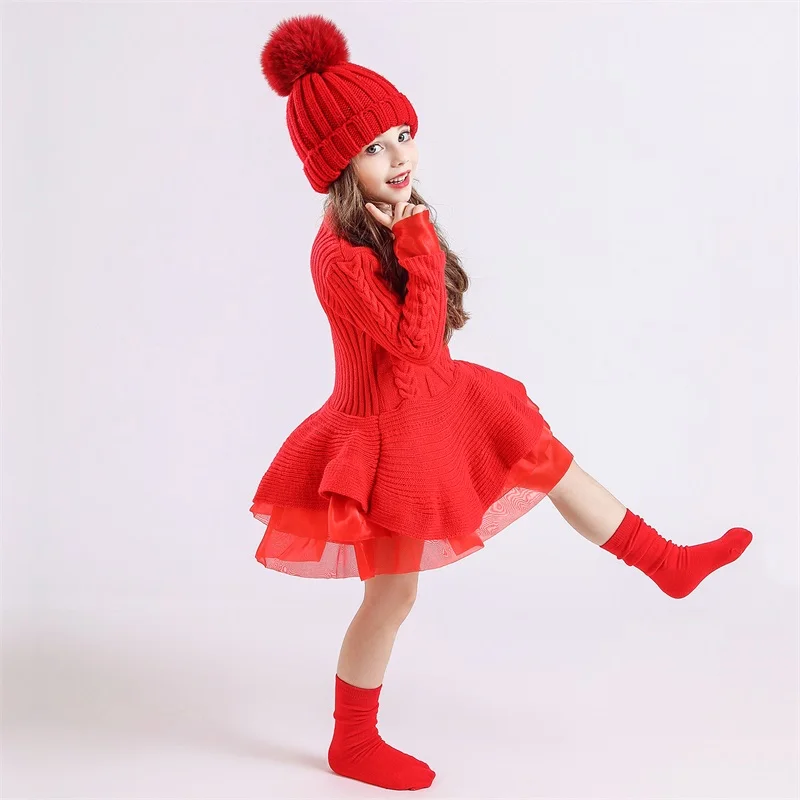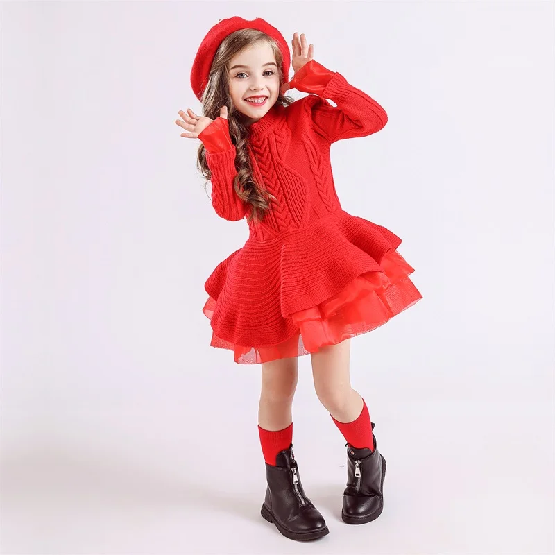 Красное платье-пачка для девочек вязаное платье с длинными рукавами...