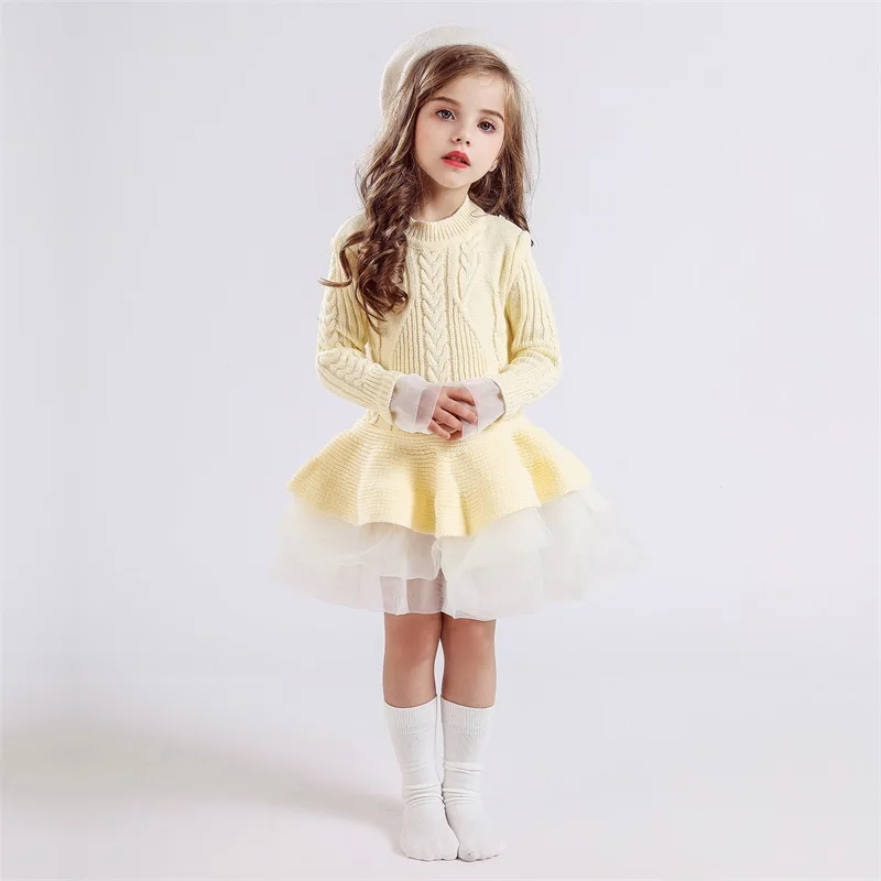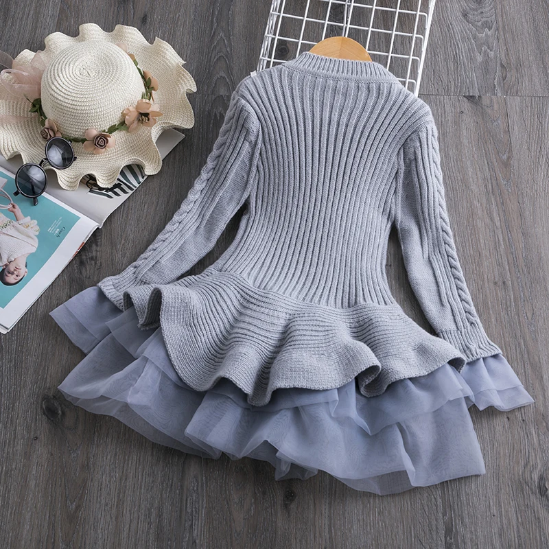 Осеннее платье для девочек, вязаная детская одежда с длинным рукаво...