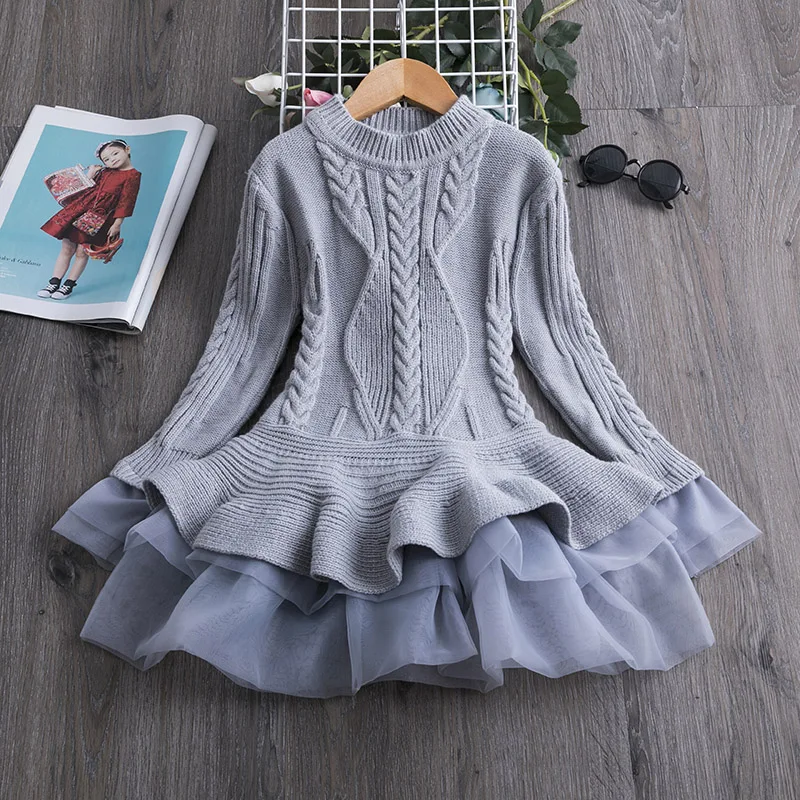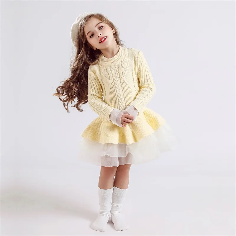 Осенне-зимнее платье для девочек, свитер, вязаная детская одежда, о...