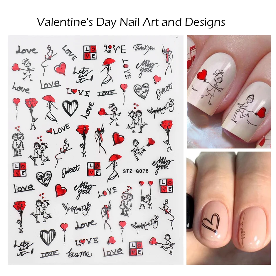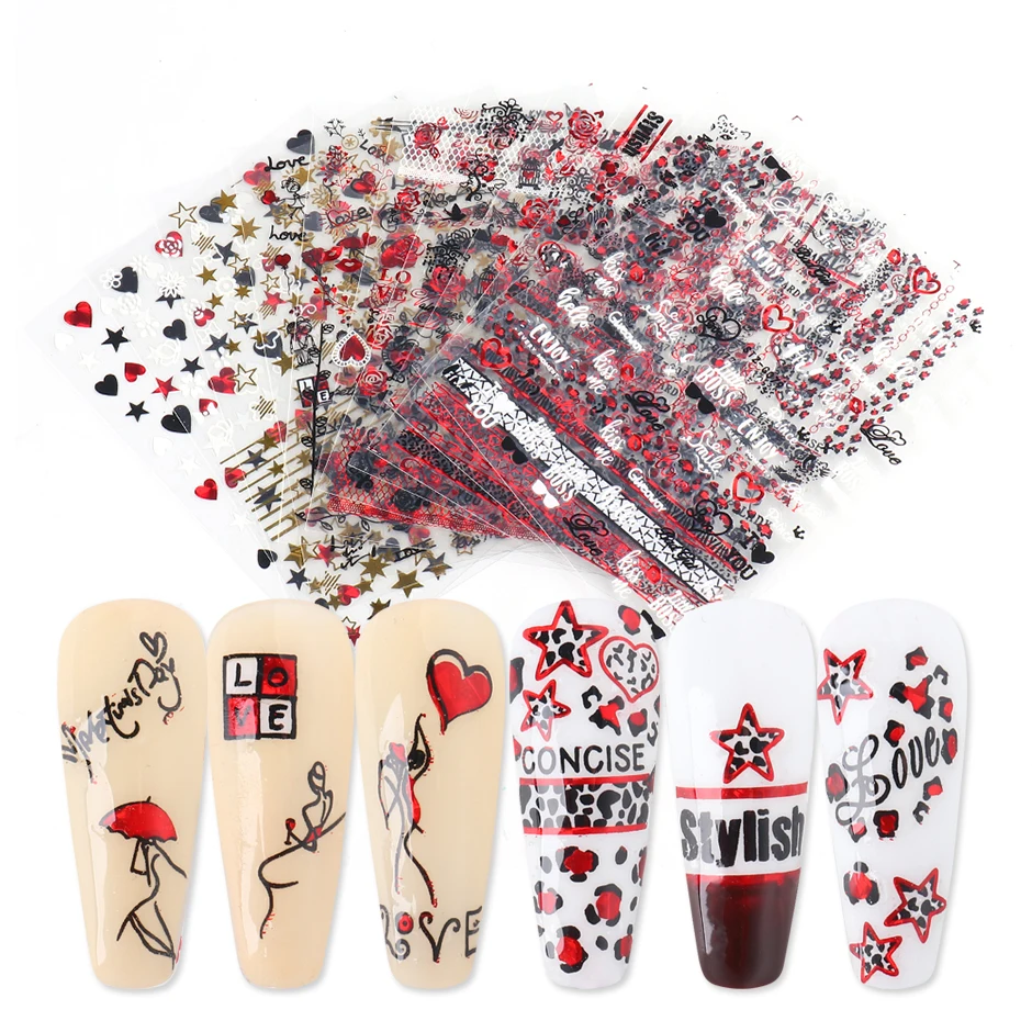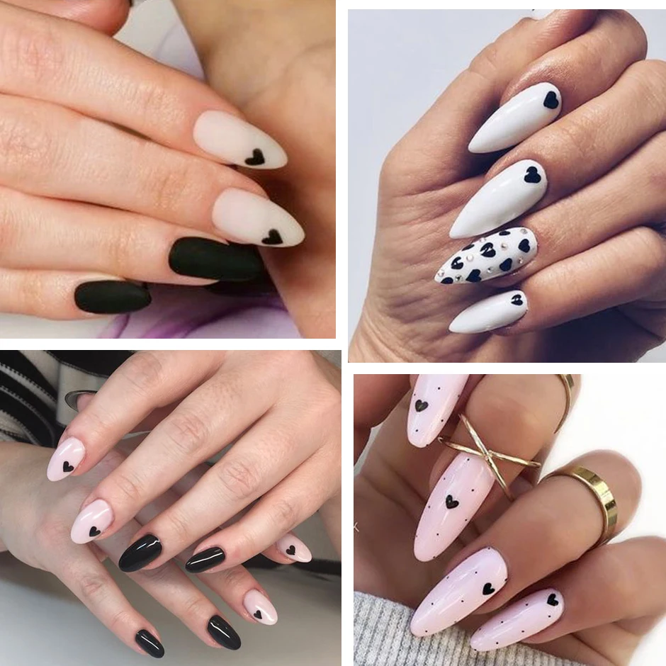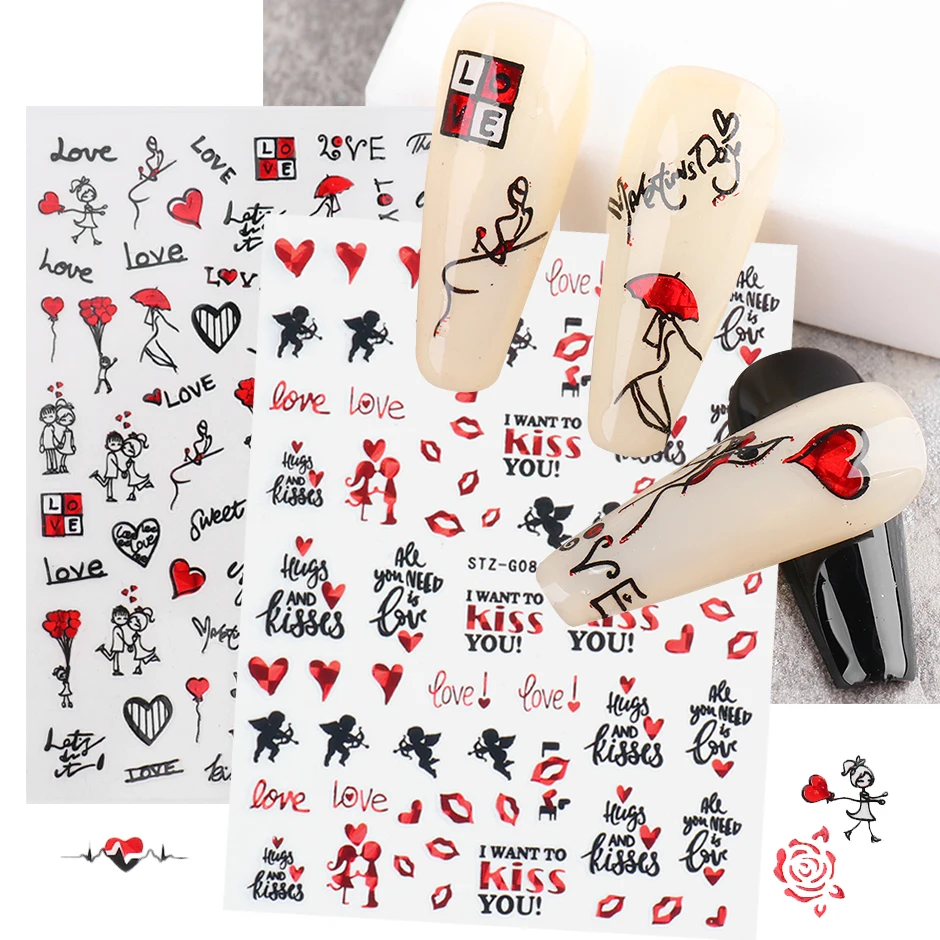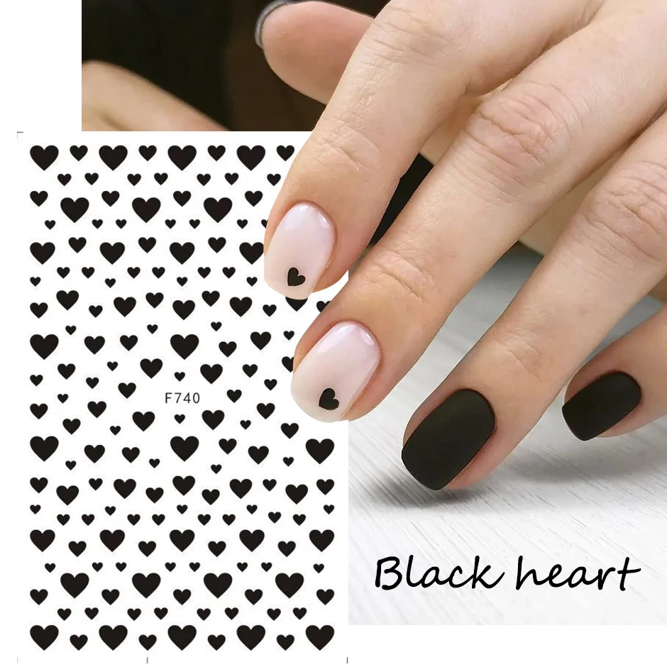 1 шт. черные сердечки Слайдеры для ногтей наклейки 3D красный белый любовь свадьба Дизайн День Святого Валентина Маникюр украшения ногтей наклейки CHF740
