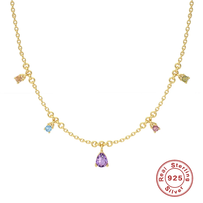 Женское ожерелье из серебра 925 пробы с радужным Цирконом