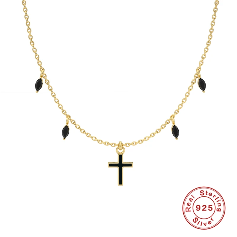 Женское ожерелье из серебра 925 пробы с подвеской в виде креста с л...