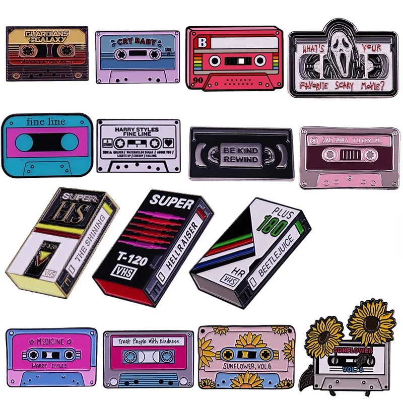 Эмалированная заколка в стиле ретро VHS, Винтажная брошь в виде микстроистой ленты, модная коллекция классических музыкальных песен и фильмов