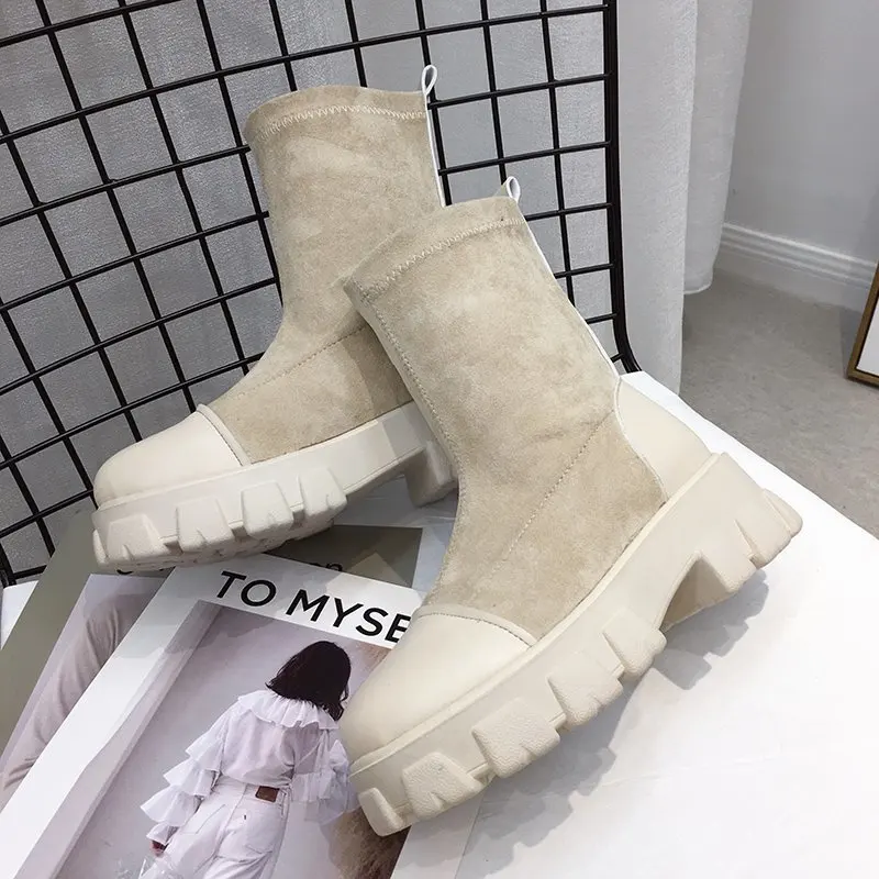 Женские замшевые ботильоны на массивном каблуке, Нескользящие ботинки на платформе, с круглым носком, осень 2021