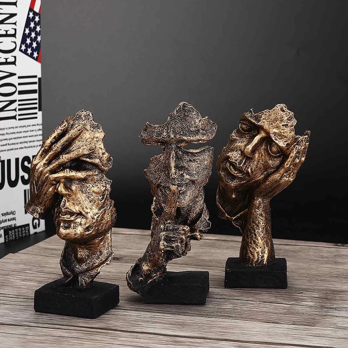 Скандинавская простая абстрактная скульптура, фигурки, украшения, тишина, золото, украшение для офиса и дома, аксессуары, современное искусство, полимерный Декор