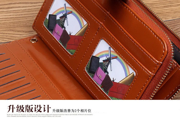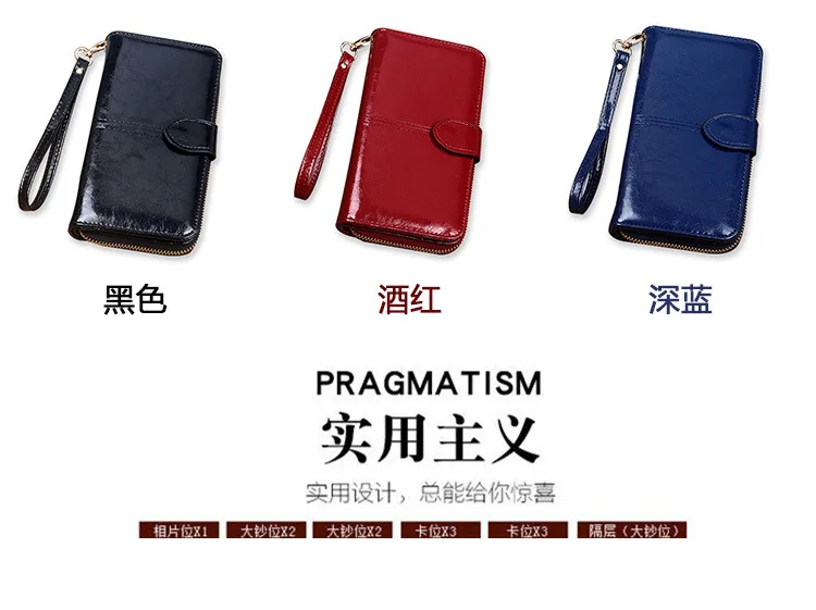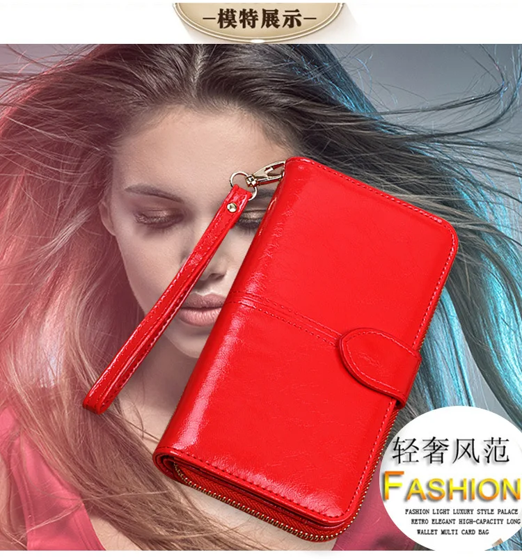 Модный масляный кожаный кошелек для женщин, однотонная сумка, много...