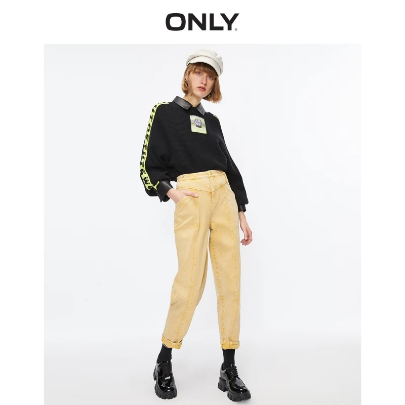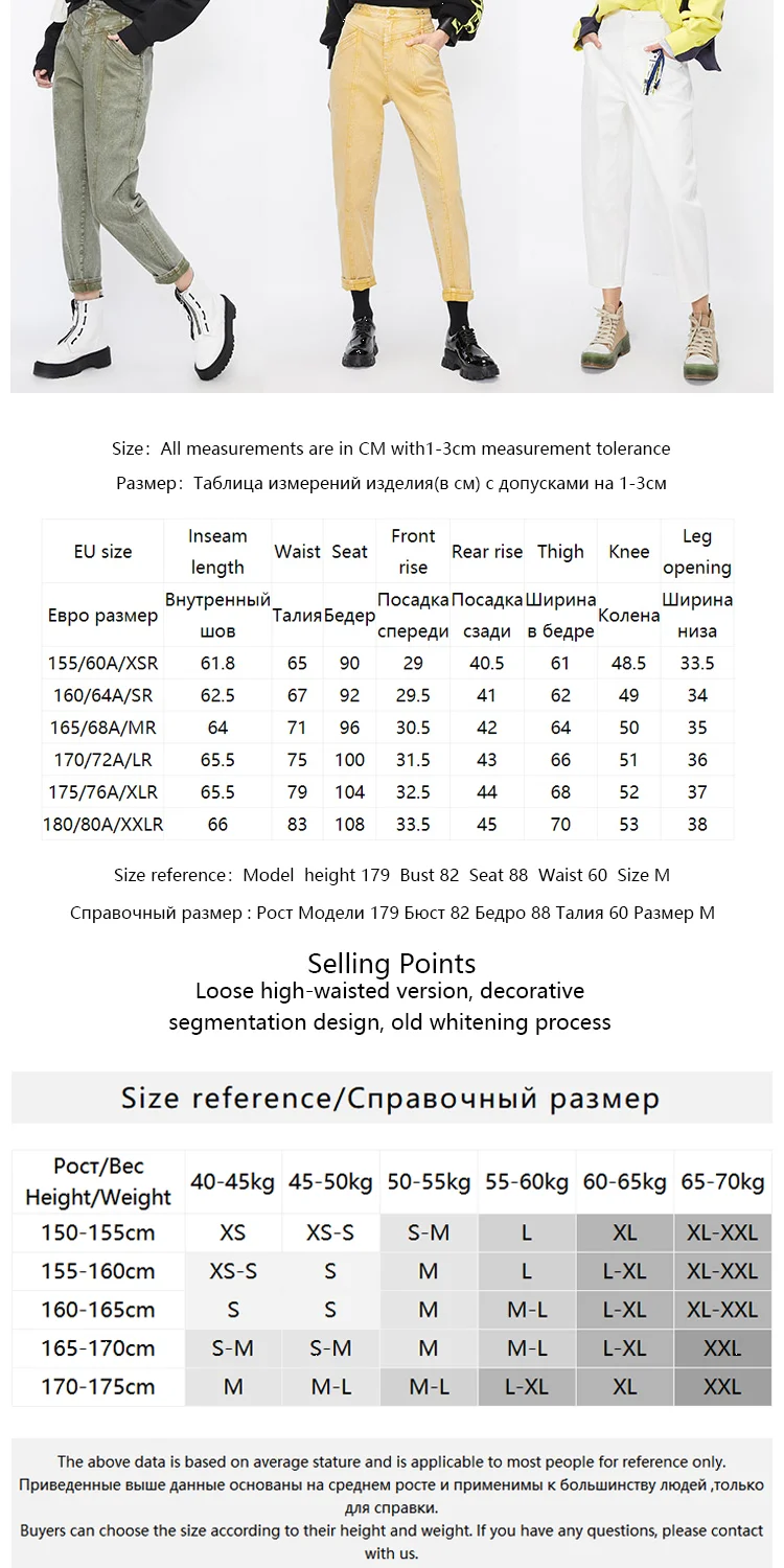 Unique DesignLoose high-waisted version, decorative segmentation design, old whitening process