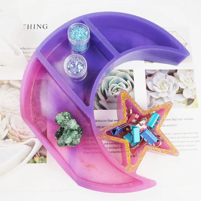 Большой поднос в виде полумесяца, форма из смолы, полка в виде Луны и звезды, прозрачный поднос для демонстрации, пластина для ювелирных изделий, формы для литья из смолы, инструменты для рукоделия