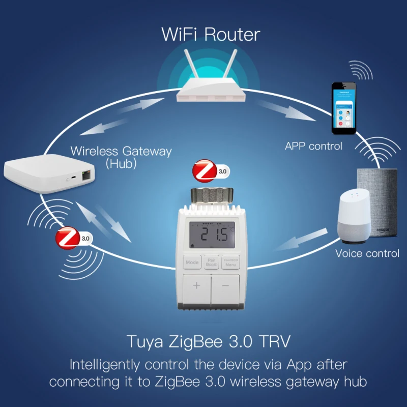 Программируемый беспроводной умный водяной радиатор HIMOJO WiFi TRV на батарейках smart life Alexa zigbee, клапан радиатора