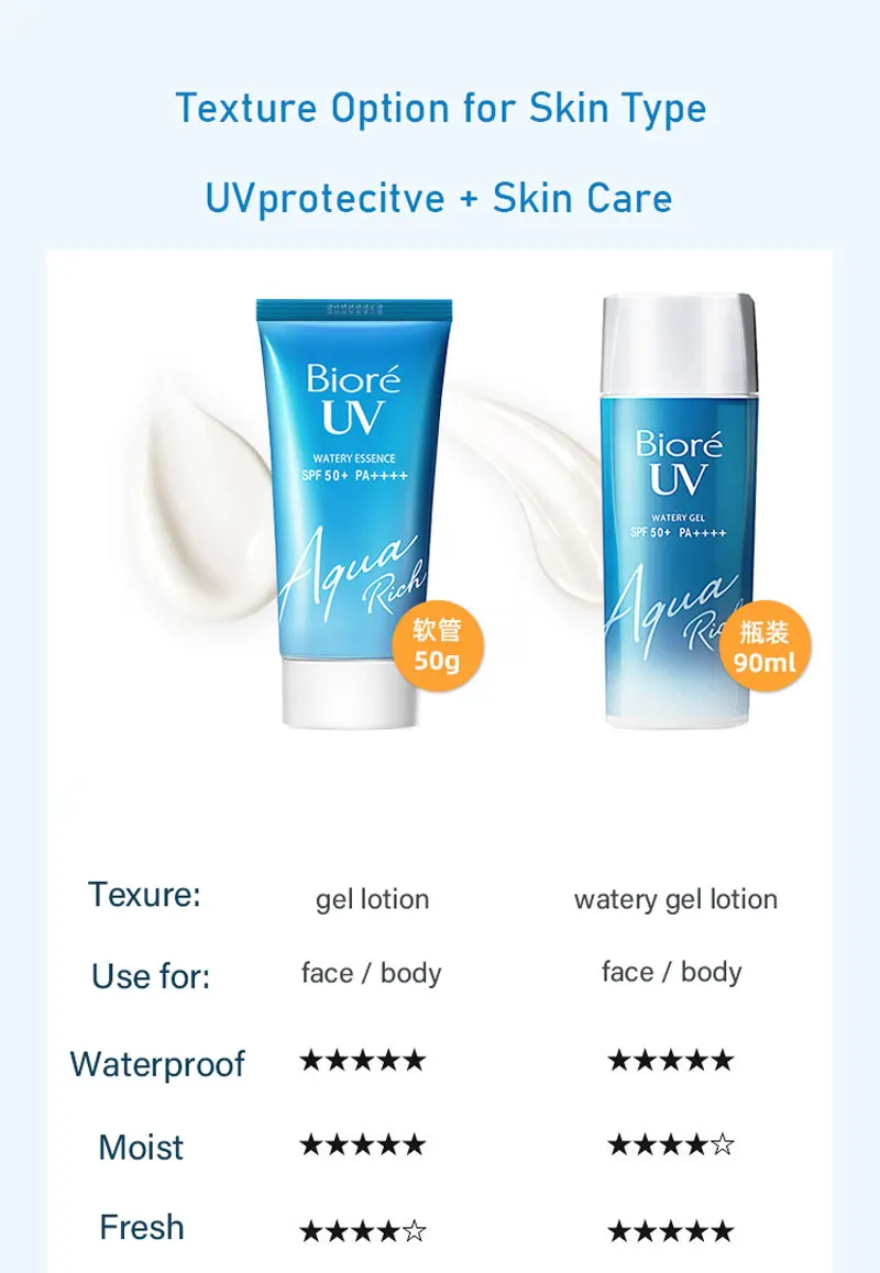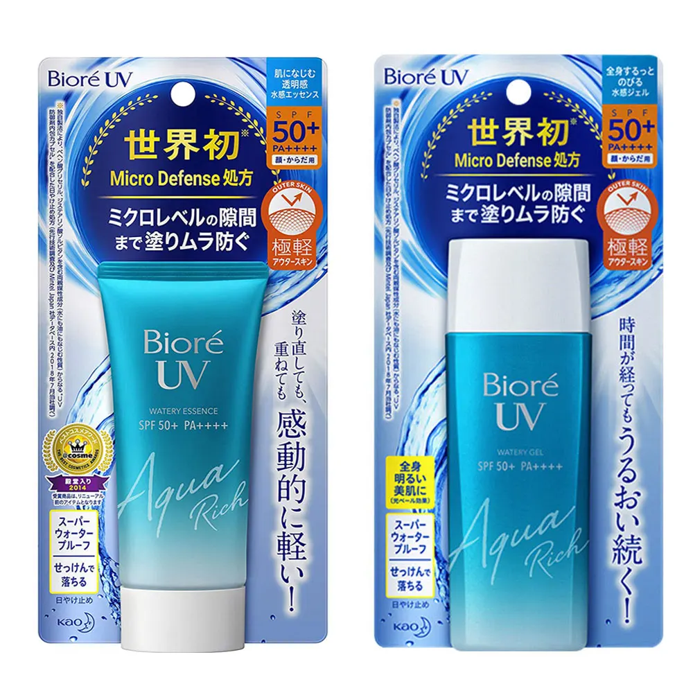 Bioré UV Aqua богатый жидкий экстракт, жидкий экстракт с прозрачным ощущением, который легко сочетается с кожей, и Bioré UV Aqua богатый водный гель, водный гель, который плавно распределяется по всему телу.Оба предмета разработаны для лица и тела, обеспечивая максимальную УФ-защиту SPF50 + и PA + +.