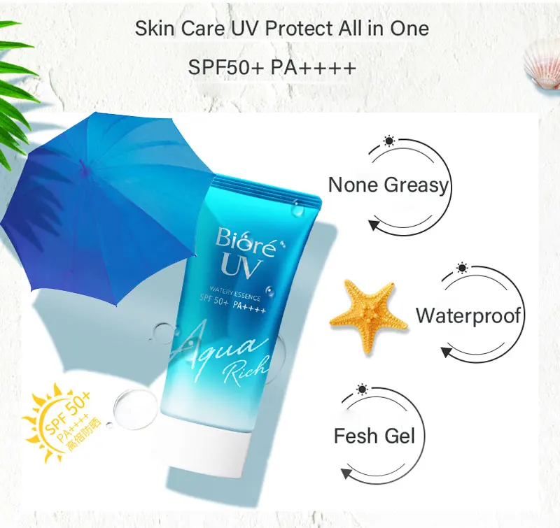 Солнцезащитный крем Biore UV Aqua Rich жидкий экстракт, японская Косметика SPF50, солнцезащитный крем для ухода за кожей, гель-лосьон для лица и тела 50 г90 мл