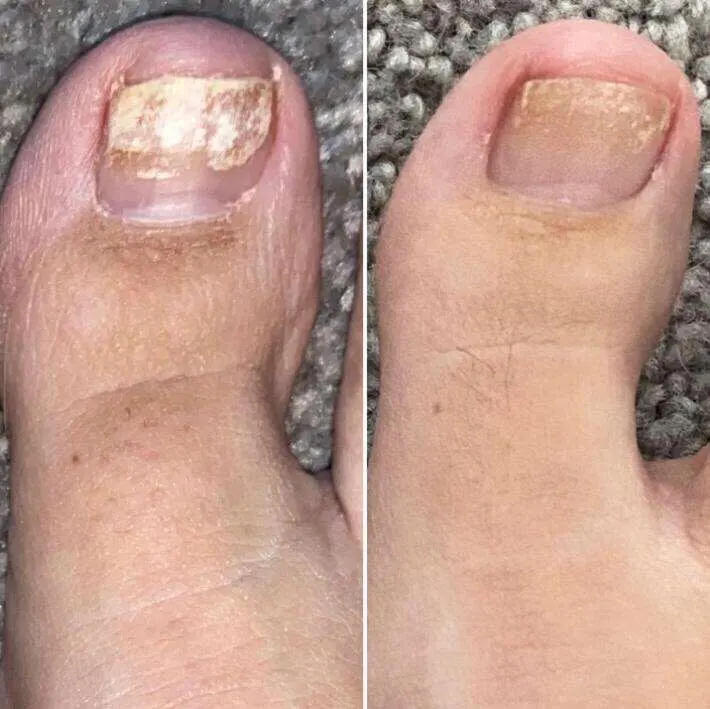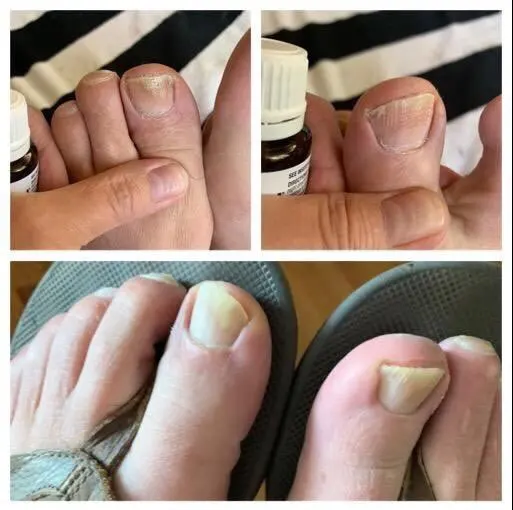 Мои фото так стыдно, но необходимо, чтобы показать удивительное колдовство этого продукта. Есть около 4 недель между фотографиями до и после. Я следовал инструкциям и все еще использую их, так как бутылка говорит, что это может занять до пары месяцев для очевидных результатов. До сих пор я очень доволен! Я буду говорить, что это занимает некоторое время, чтобы высохнуть, поэтому я бы порекомендовал дать достаточно времени, чтобы он мог работать над своей магией, прежде чем надевать носки, обувь, Тапочки или вставлять в кровать.