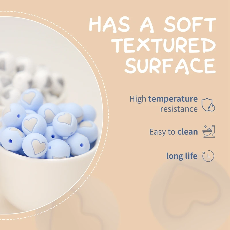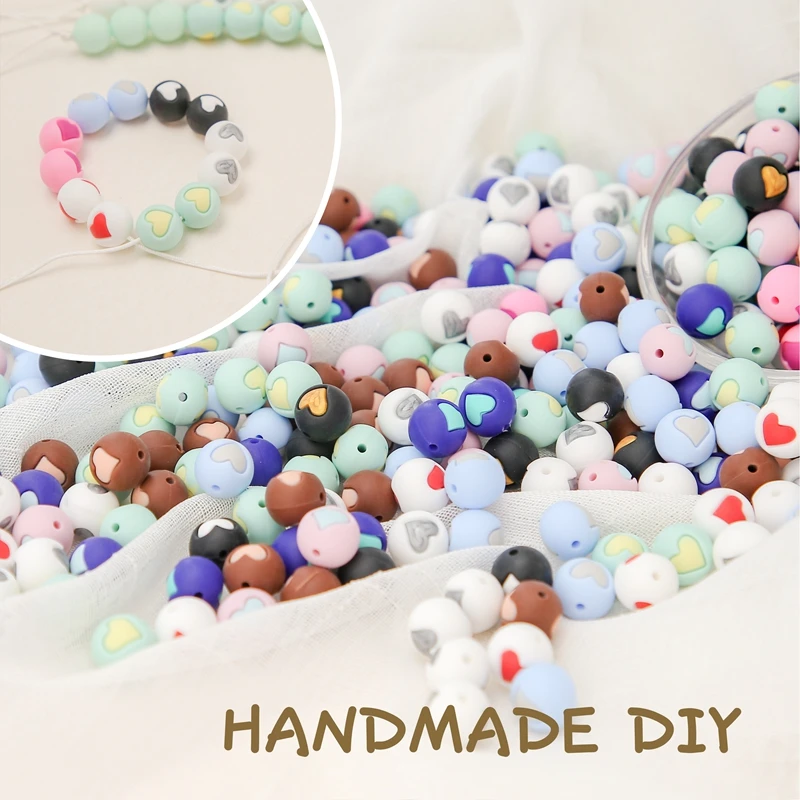 Детские Силиконовые Бусины Let's Make 14 мм 10 шт.лот красочные в форме сердца Прорезыватель жевательные круглые бусины сделай сам цепочка для пустышки ожерелье