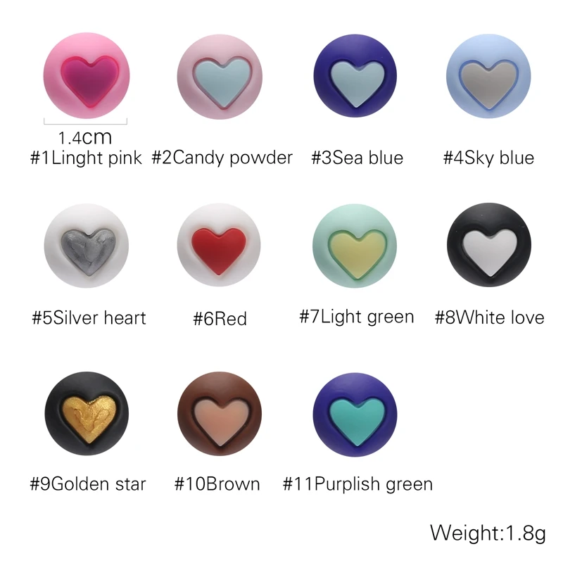 Давайте сделаем 14 мм 10 шт./лот Детские Силиконовые Бусины Красочные в форме сердца Прорезыватель жевательные круглые бусины DIY соски цепь ожерелье