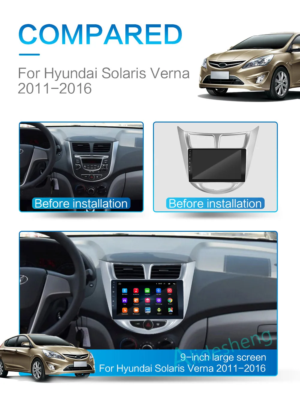 Автомагнитола 2din Android 10,0, мультимедийный плеер с навигацией для Hyundai Solaris accent Verna 2010 2011 2012 2013 2014 2015-16, камера