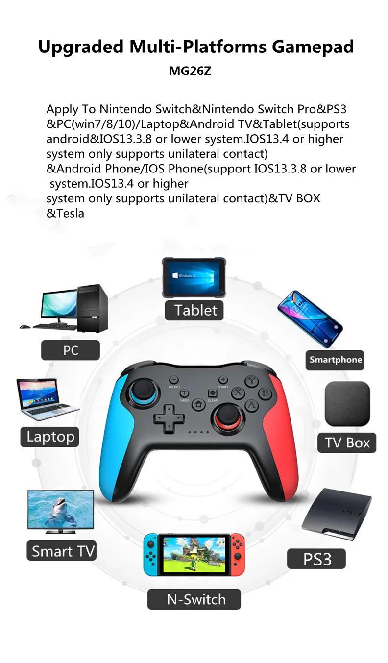 Беспроводной контроллер Bluetooth 2,4G для Nintendo Switch Pro, ПК, ТВ-приставки, смартфонов, планшетов, PS3, Tesla Shock, джойстик, геймпад, 2 шт.