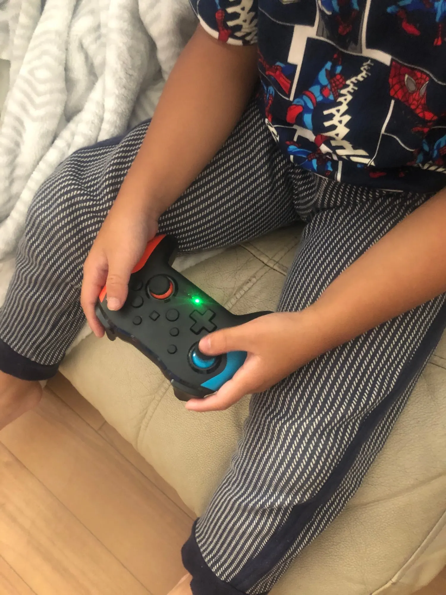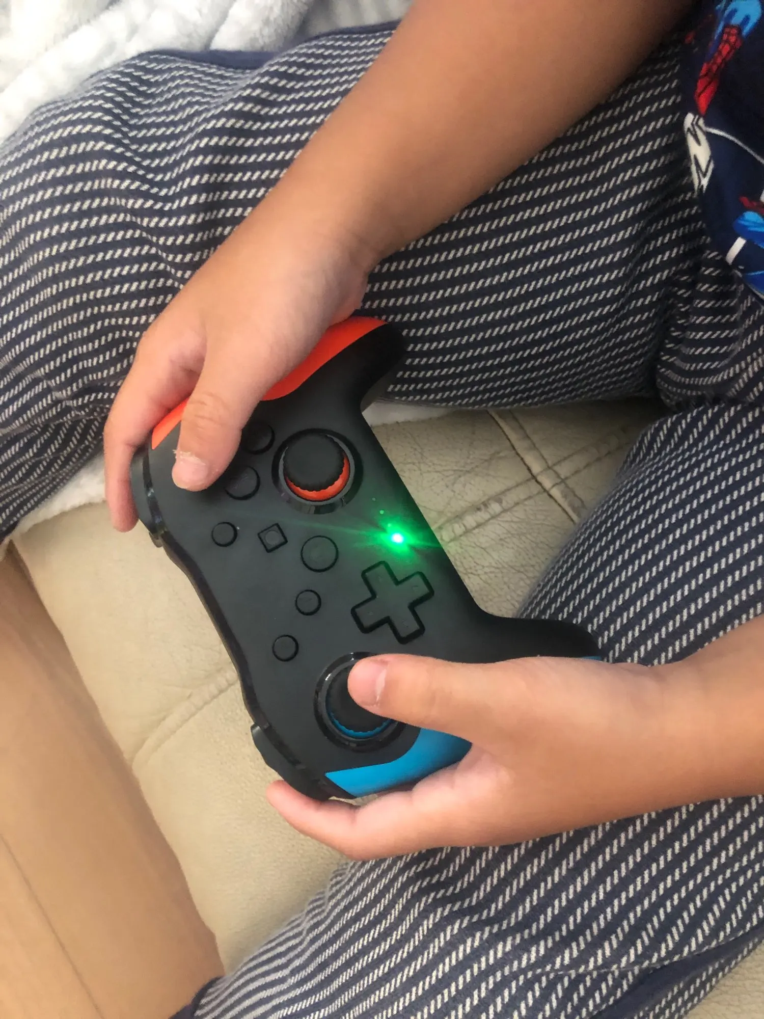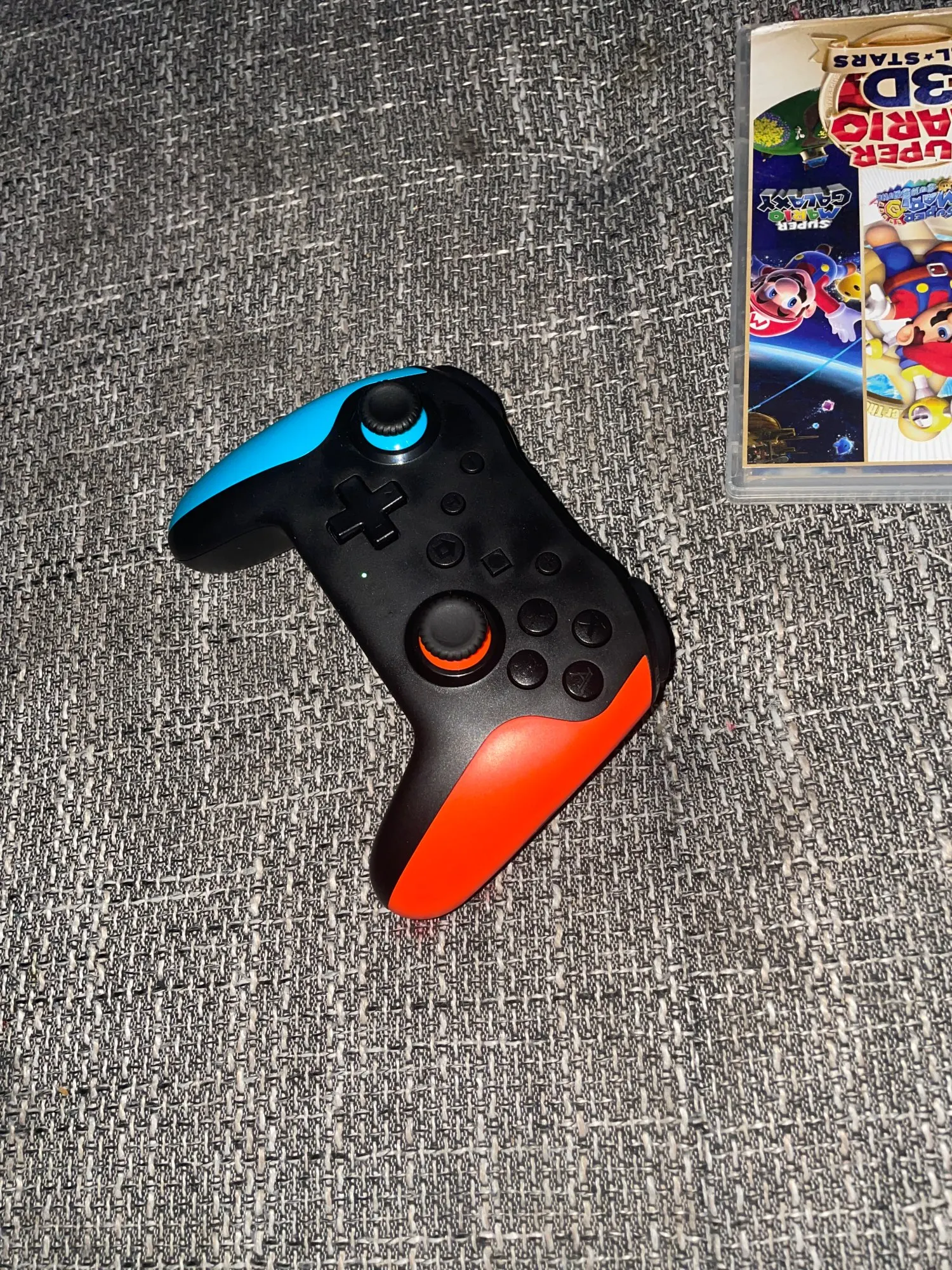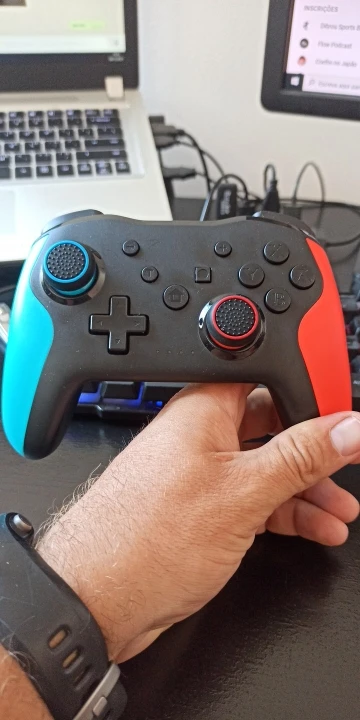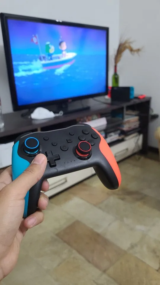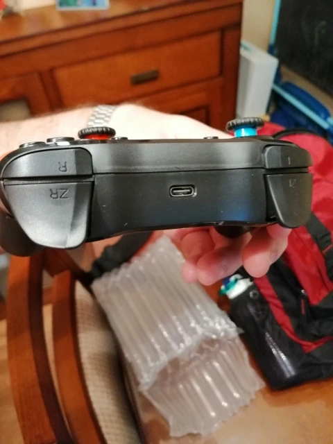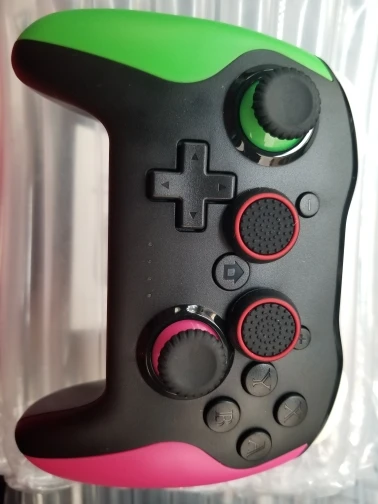 Хороший продукт. Эргономичный и удобный на ощупь, на его поверхности. Команда отвечает правильно. Он очень легко синхронизируется с Nintendo Switch. При нажатии только L R с включенным консолью. Так просто. Я рекомендую это.