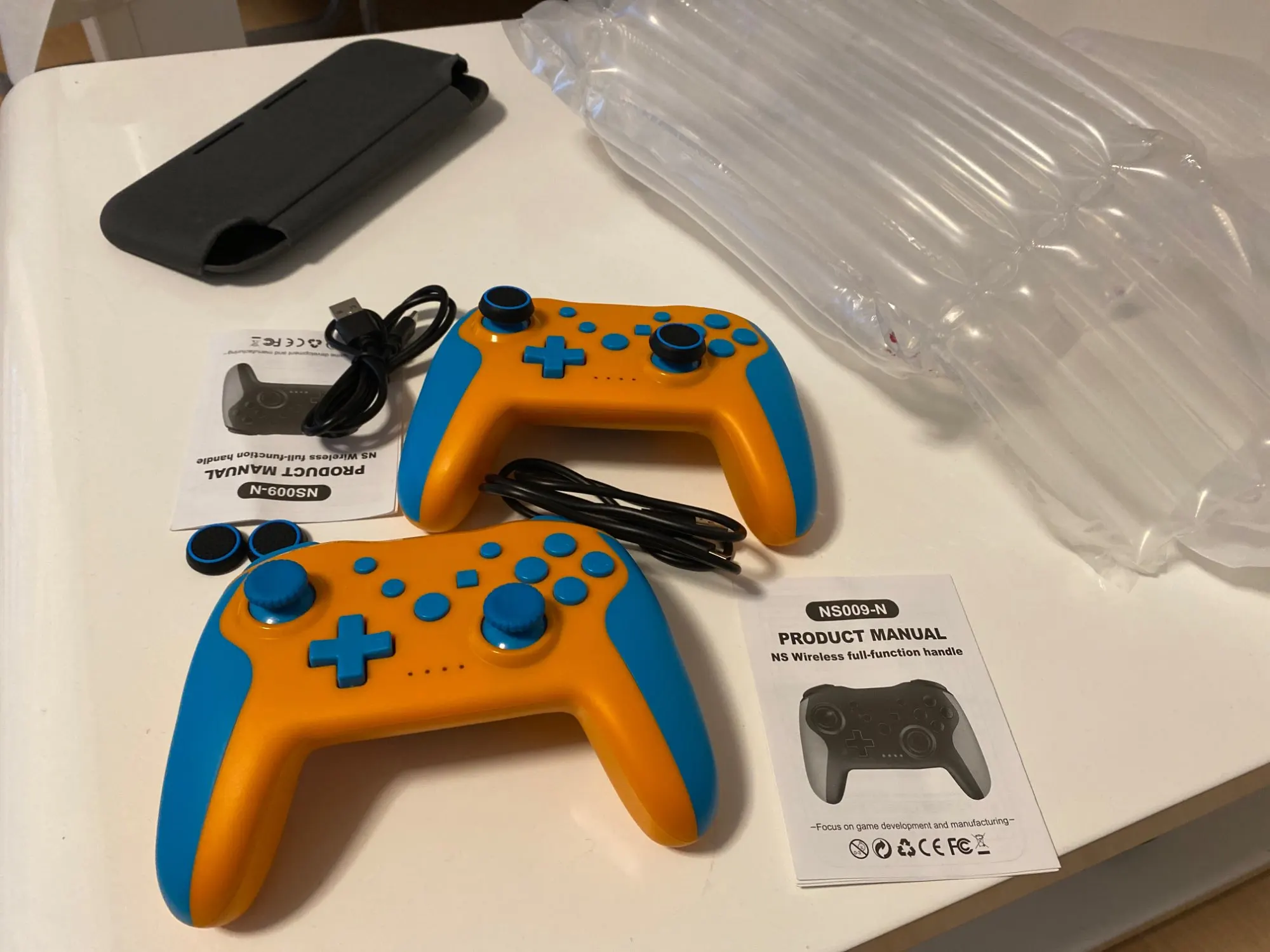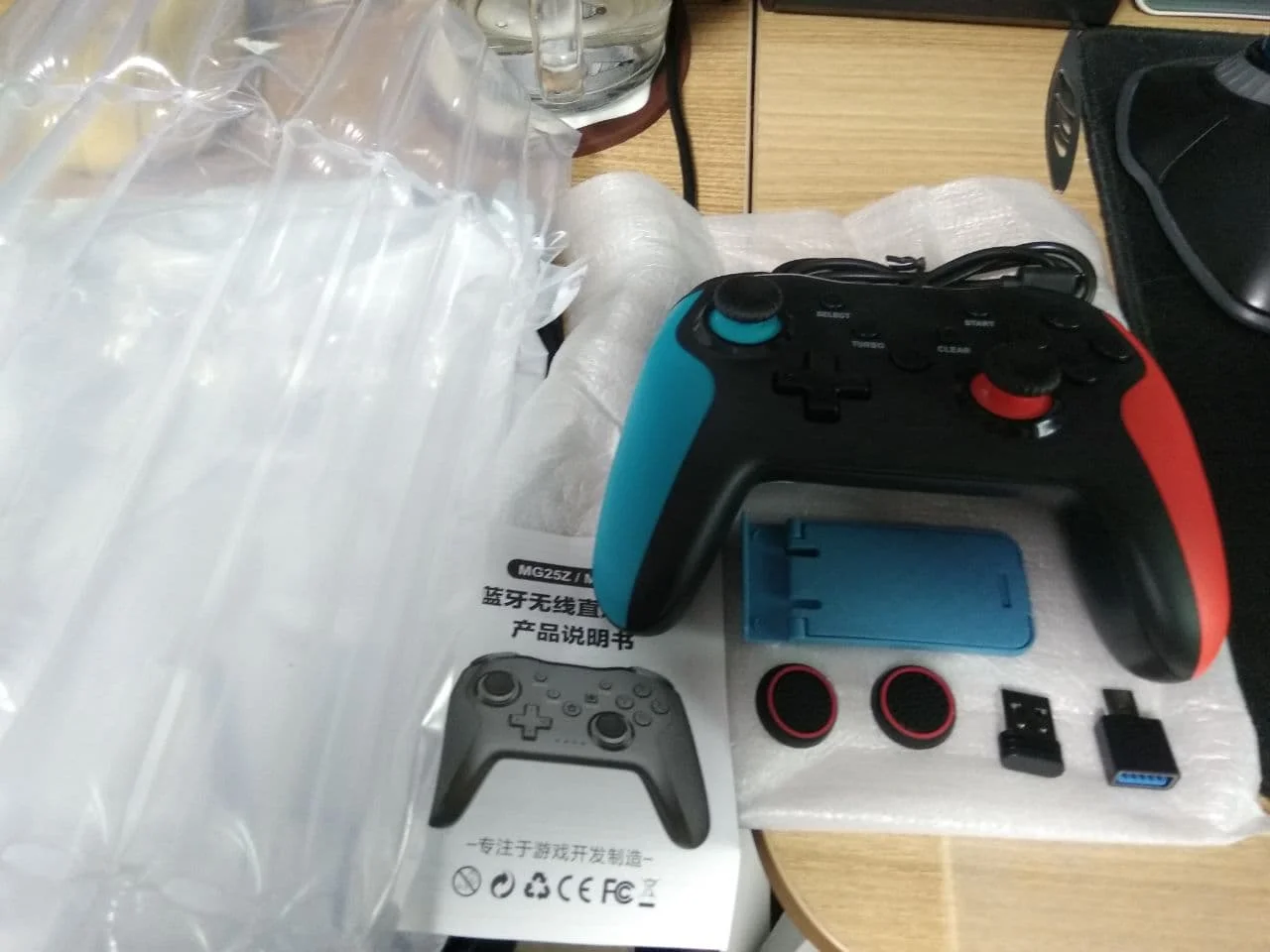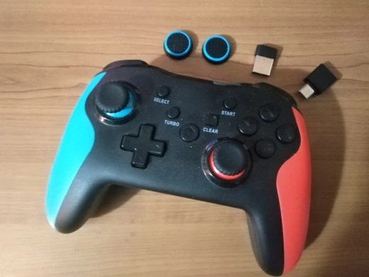 Отличный джойстик. Продавцу огромное спасибо, пошёл на встречу) Очень удобный и приятный, есть много режимов, на Bluetooth не пробовал, через Bluetooth 2.4G теряется связь, но через провод играю на компьютере и все супер! Ещё раз спасибо большое, я очень рад. На фото видно все что было в комплекте. Кстати, подушечки для стиков не очень удобные для меня.