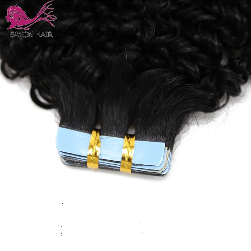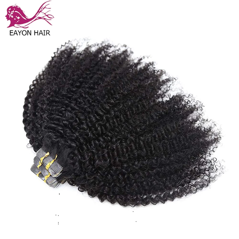 Афро кудрявые вьющиеся волосы на ленте для чернокожих женщин, Монгольская кожа, клейкая невидимая лента для наращивания, 40 шт.