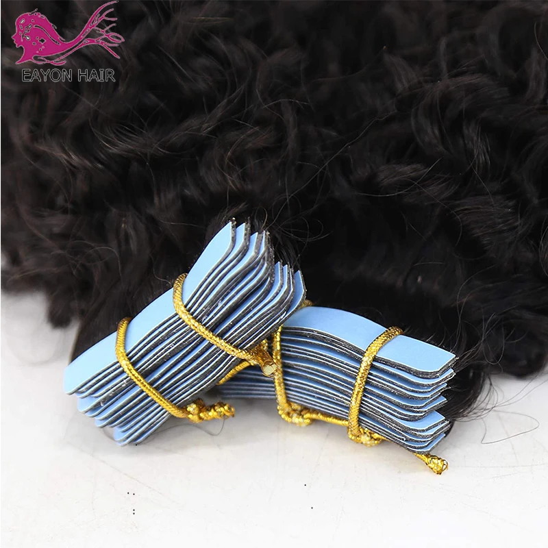 Кудрявые кудрявые волосы 40 штук лента в человеческих волосах Кожа ...