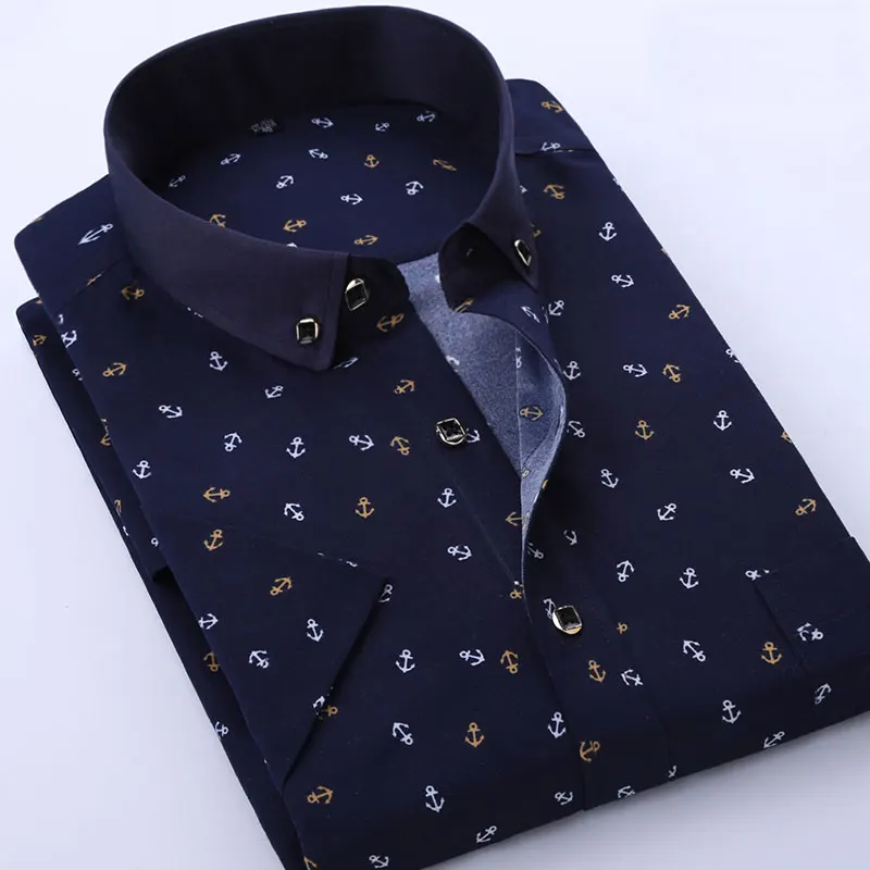 Рубашка мужская с коротким рукавом, модная повседневная сорочка с принтом, Стандартный крой, дышащий Мягкий Топ для вечерние, тонкая пляжная сорочка, лето