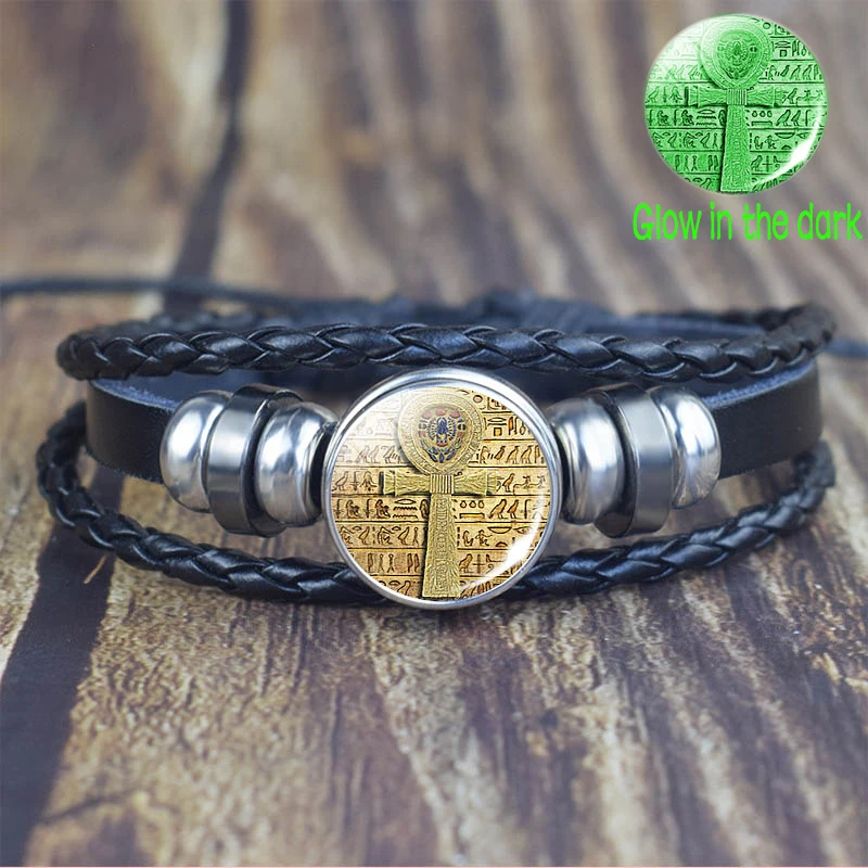Египетский Анкх светится в темноте панк браслет винтажный Древний Египет Анубис Scarab богиня Многослойные браслеты амулет ювелирные изделия