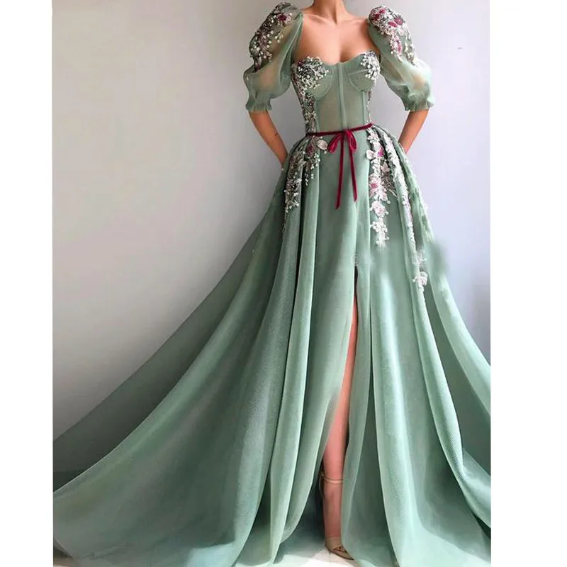 Элегантные мусульманские юбки для выпускного вечера с поясом с высоким разрезом кружевные трапециевидные Длинные вечерние платья исламского Дубая Саудовской Аравии