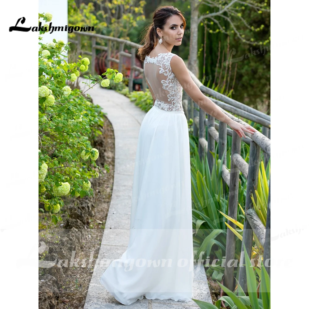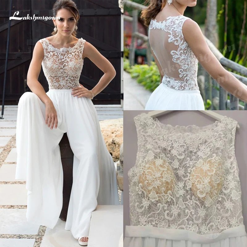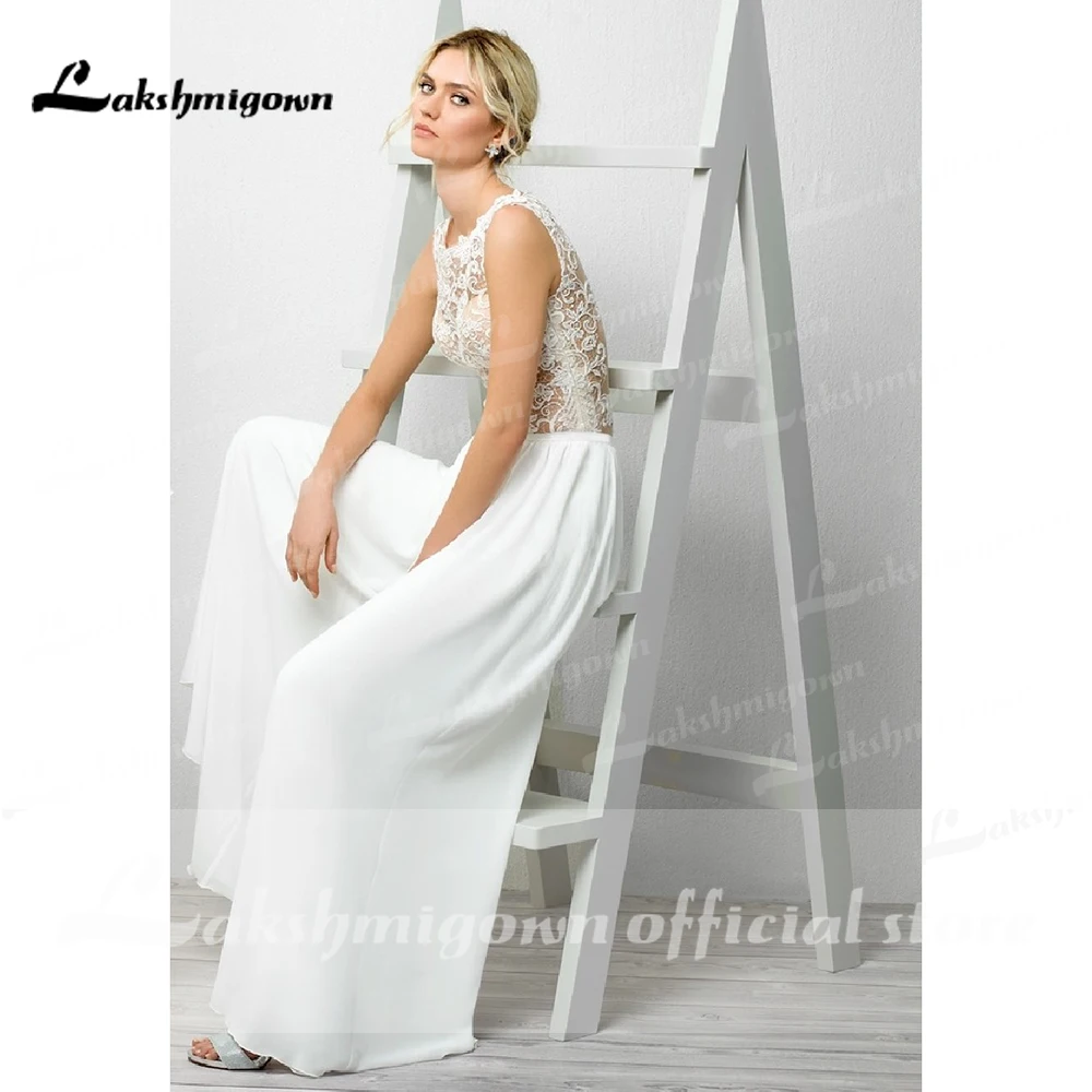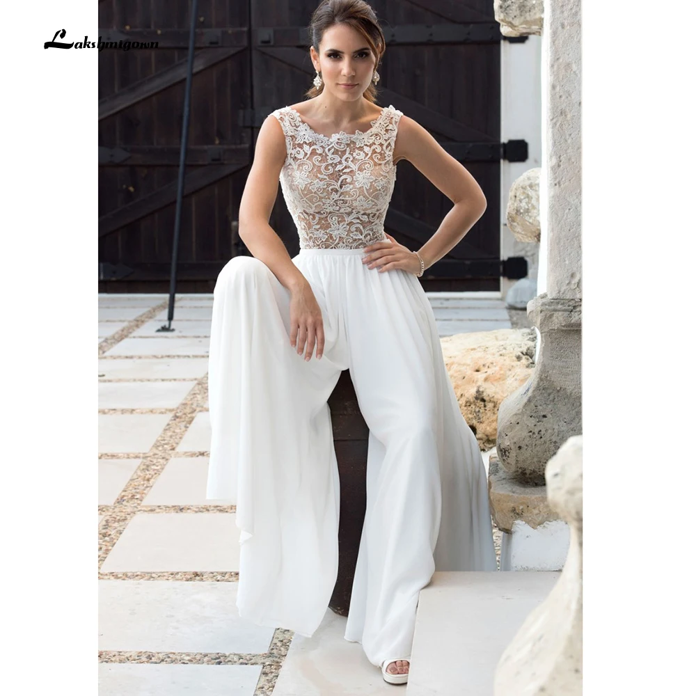 Скромный Белый Свадебный комбинезон, пляжные свадебные платья с круглым вырезом, длина в пол, регулируемый наряд, кружевной халат на заказ