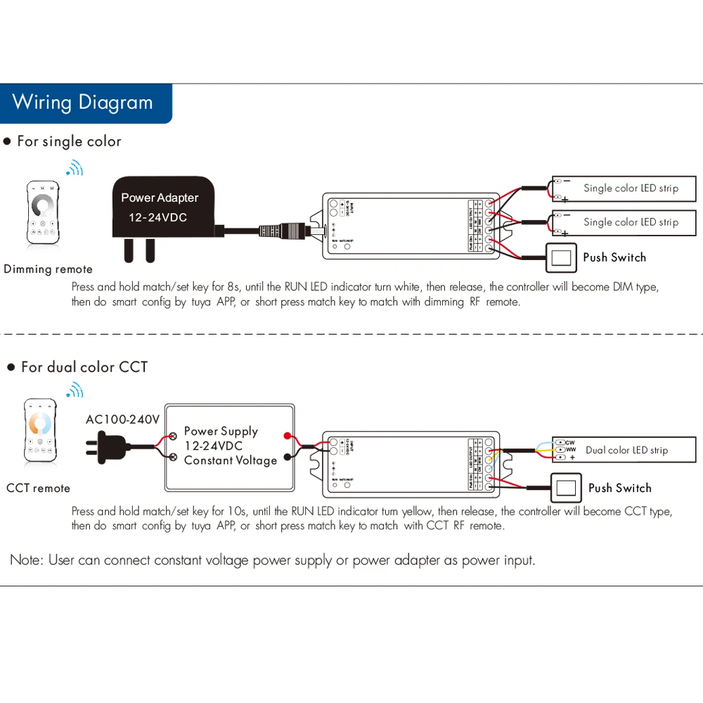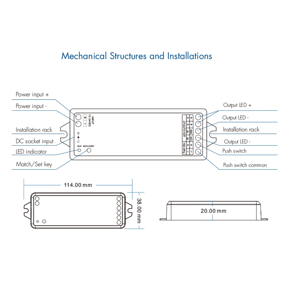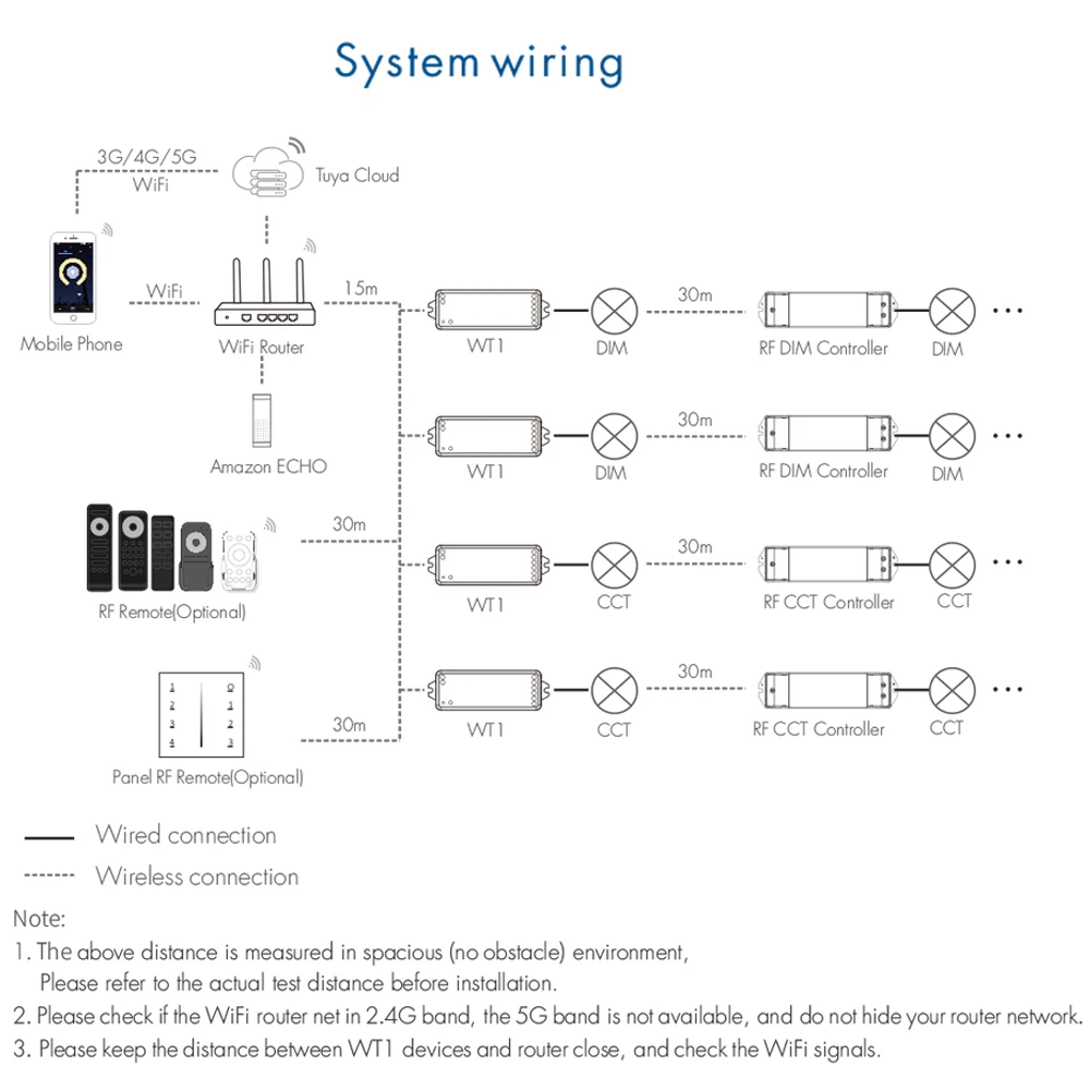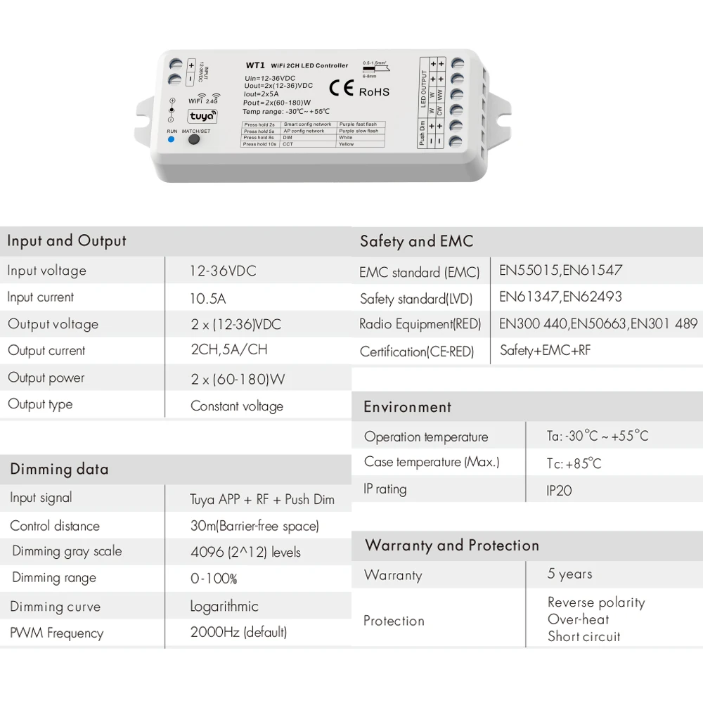 WT1 светодиодный контроллер совместим с ниже светодиодный ленты:-Одноцветный светодиодный светильник-Двойной белый (WW + CW) CCT светодиодный светильник