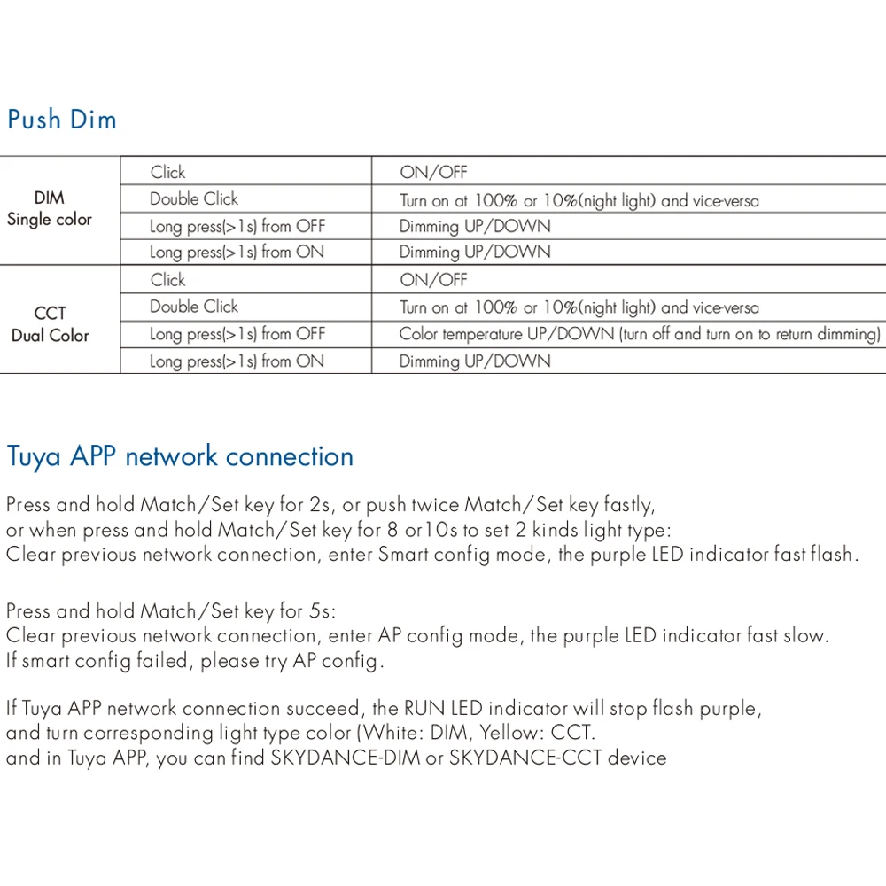 -Пользователь должен установить тип светильник нажатием кнопки перед подключением к сети Tuya APP и соответствовать радиочастотному удалению того же типа светильник.