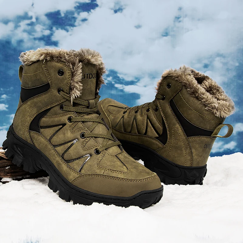 Мужские кожаные ботинки для снежной погоды, коричневые Теплые повседневные ботинки для улицы, армейские ботильоны, рабочая обувь, большой размер, для зимы, 2021