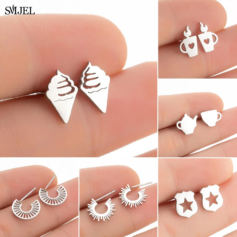 Женские Геометрические серьги из нержавеющей стали 2021, модные серьги-подсвечники в виде мороженого, зажигалки, чашки чая, уникальные украшения, подарки для детей